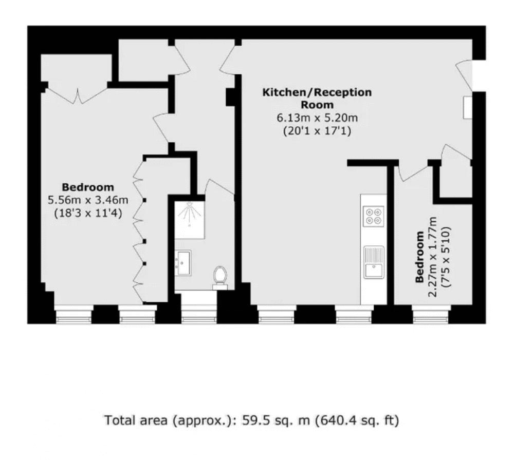A bright and well-arranged two-bedroom second-floor flat, approximately 465 sq ft, ideally positioned close to local ame...