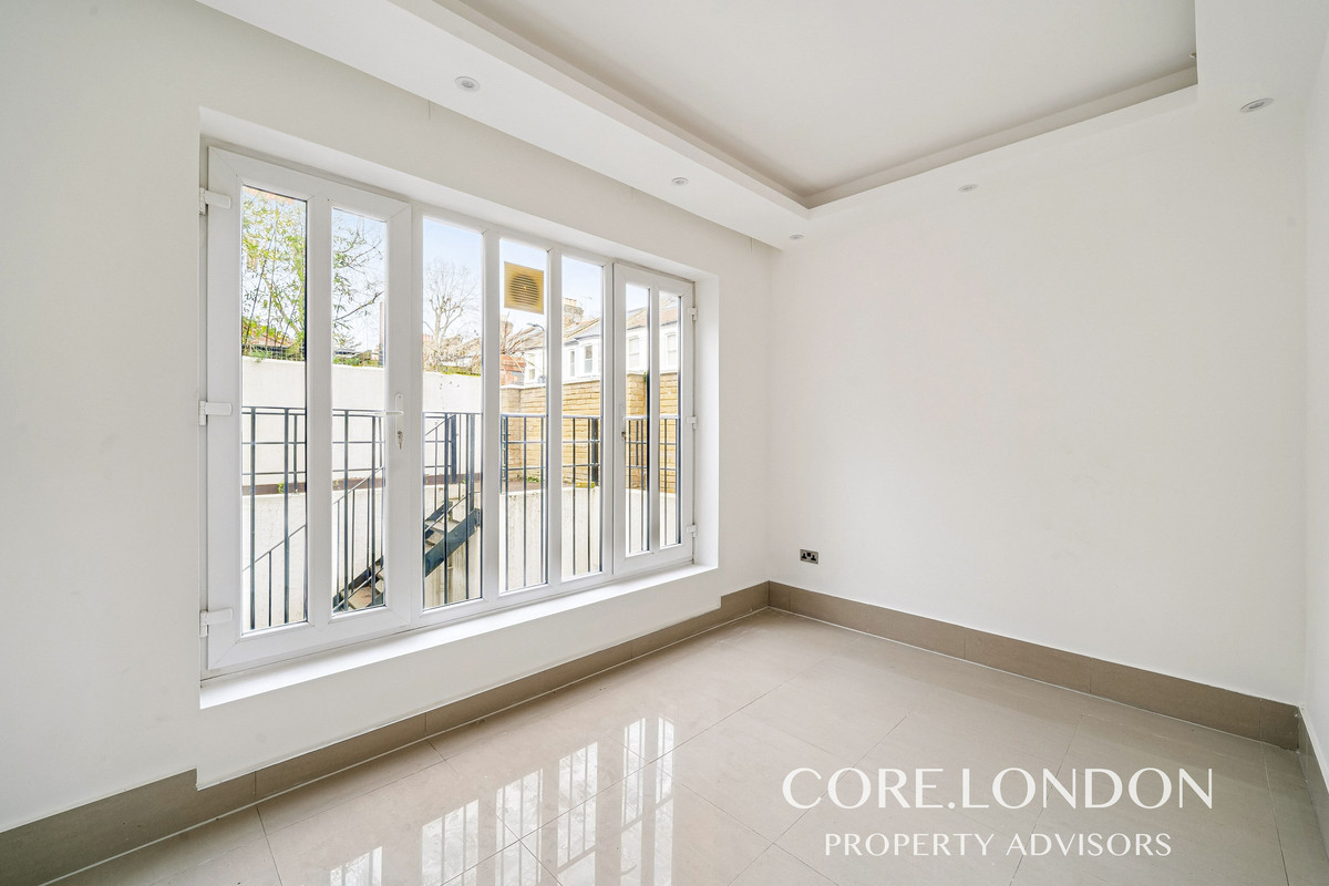 The property offers a bright and well-proportioned layout, comprising a separate reception room to the front with bay window, a modern fitted kitchen, and a generous dining area to the rear with direct access onto a private patio garden. The lower ground floor provides three bedrooms, including a larger main bedroom, alongside a contemporary bathroom and additional shower room.