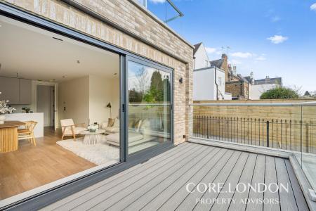 This flat enjoys extensive outside space, with a private terrace, in addition to communal garden access.