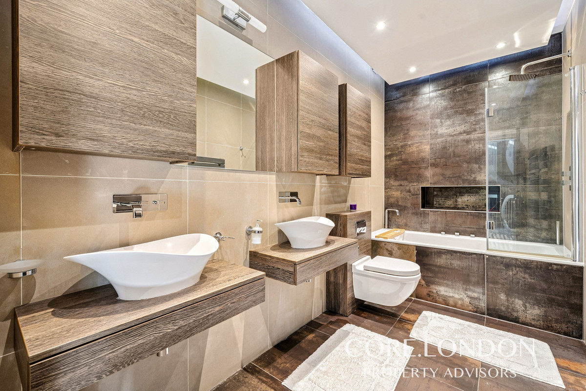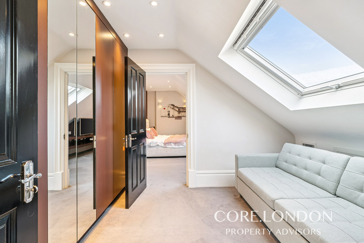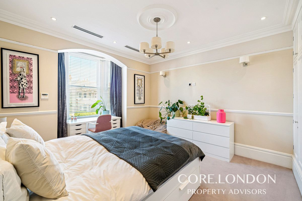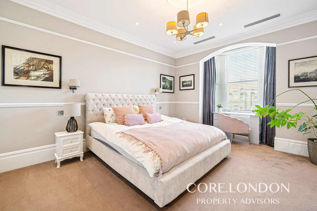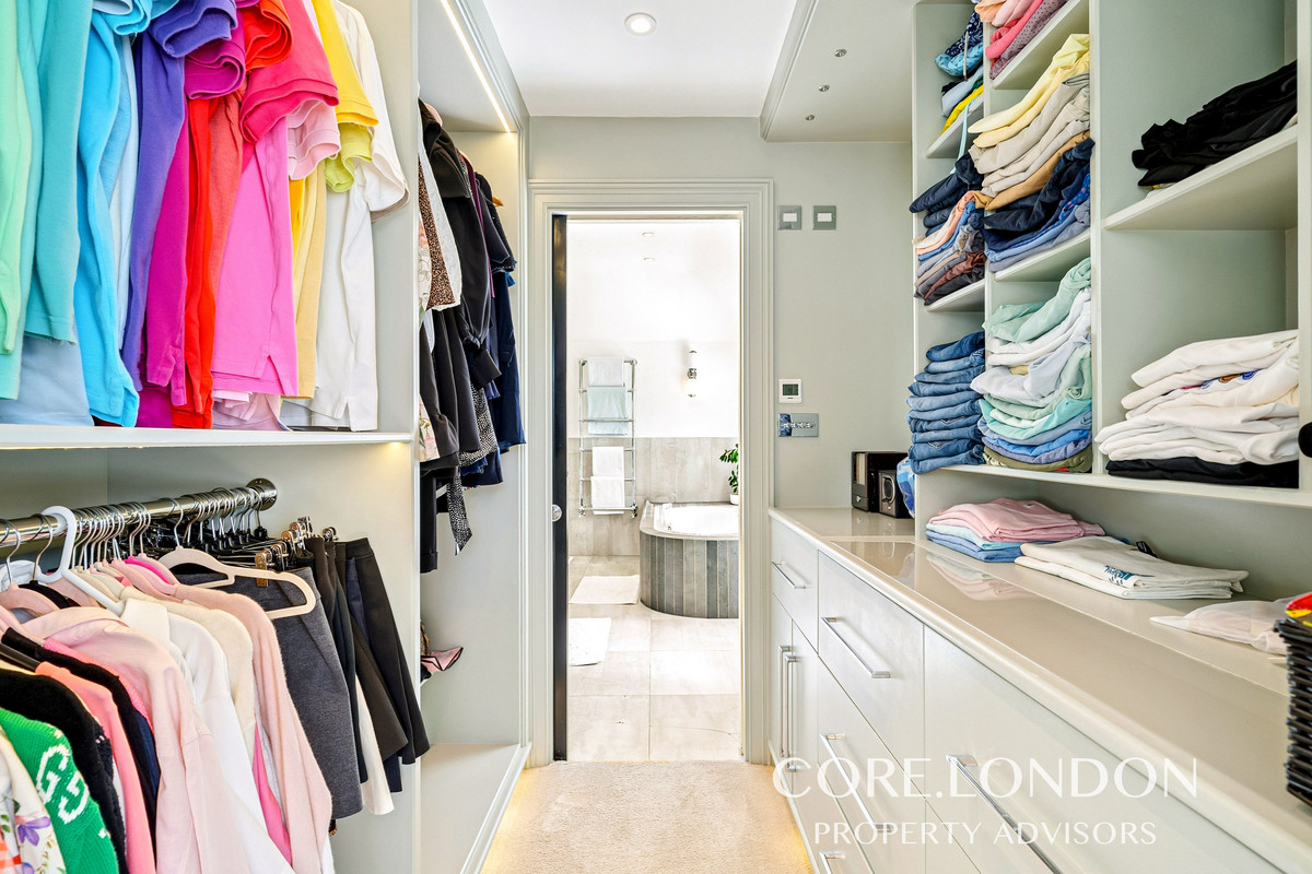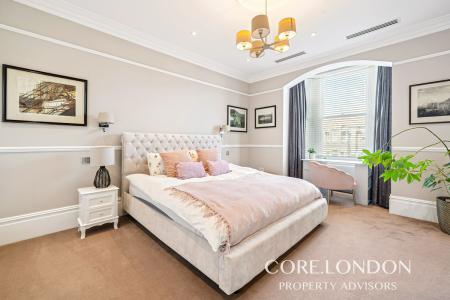 Across the upper floors are six well-proportioned double bedrooms. The principal suite features a well-appointed en-suite bathroom and bespoke fitted wardrobes.