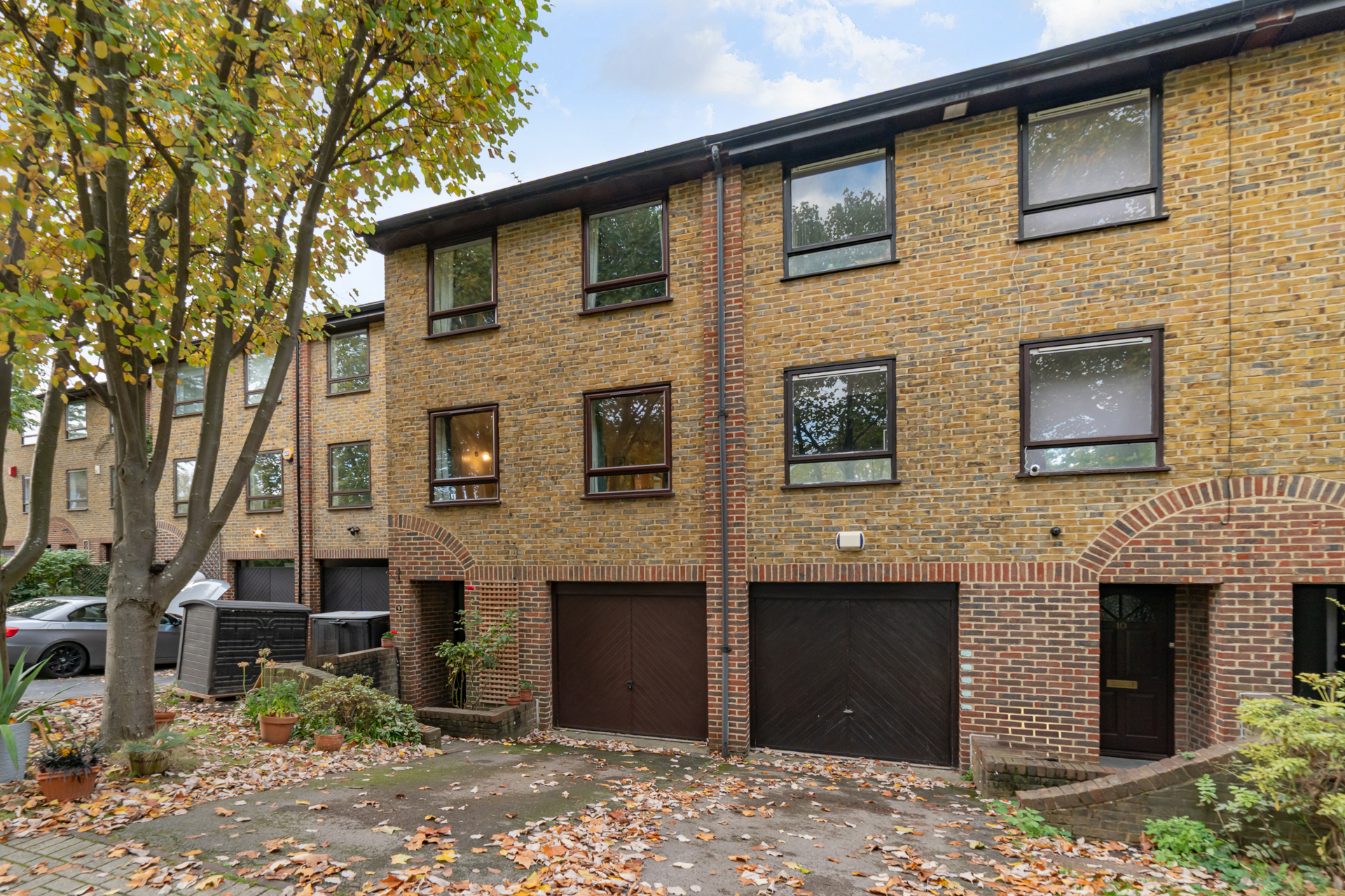 A spacious three storey town house in this secure gated development. This property offers scope to re-configure and extend subject to the required permissions. Accommodation comprises: Ground Floor: entrance hall with storage cupboards, door to garage, guest cloakroom, utility room and bedroom / study. First Floor: spacious kitchen / diner, living room with good aspect over-looking the green open space of Tamplin Mews Gardens. Second Floor: main bedroom with en-suite bathroom, two further bedrooms and family bathroom. Outside there is a drive way with off street parking and a good sized west facing garden mainly laid to lawn. Freehold.