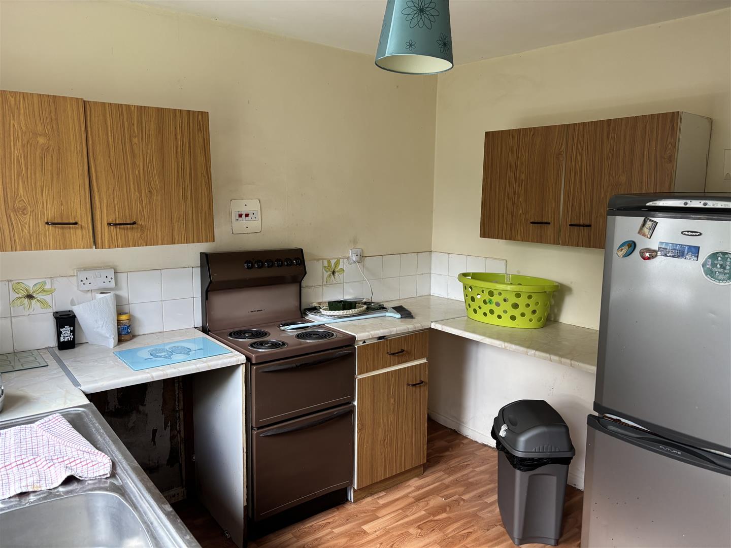 Kitchen - Fitted with a range of eye and low level units with matching worktop. Tiled around units. Stainless steel sink unit. Point for hob and oven. Cushion flooring.