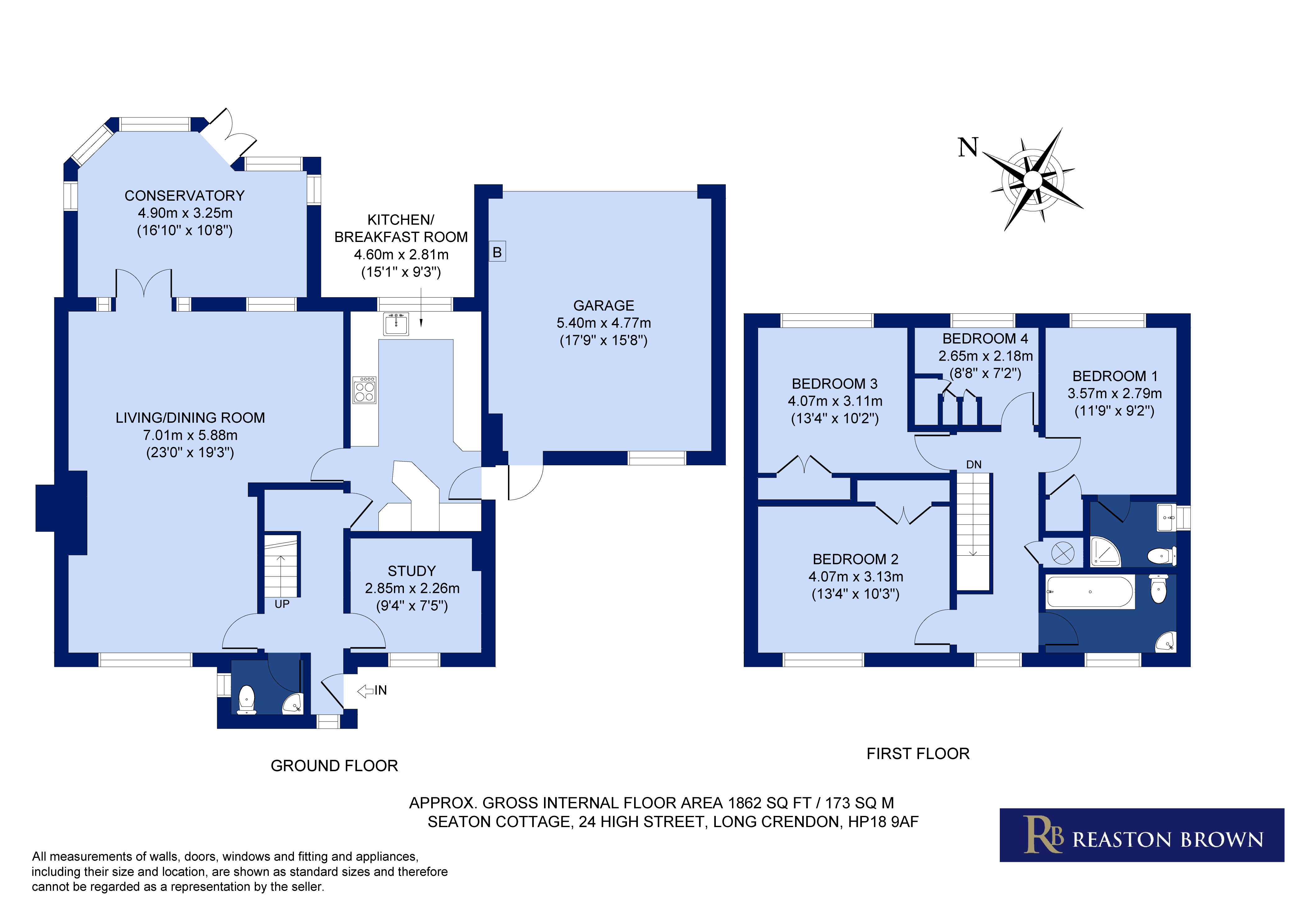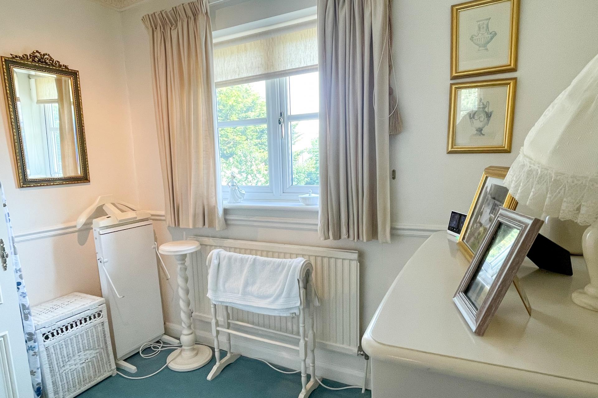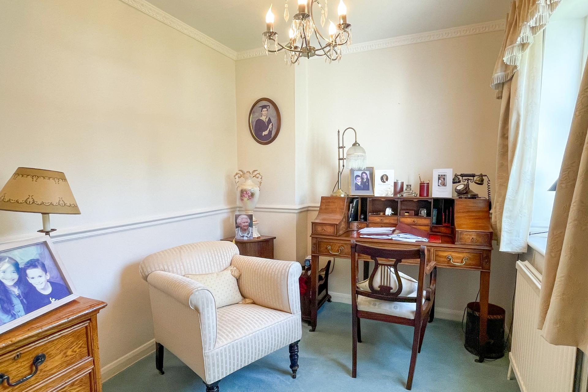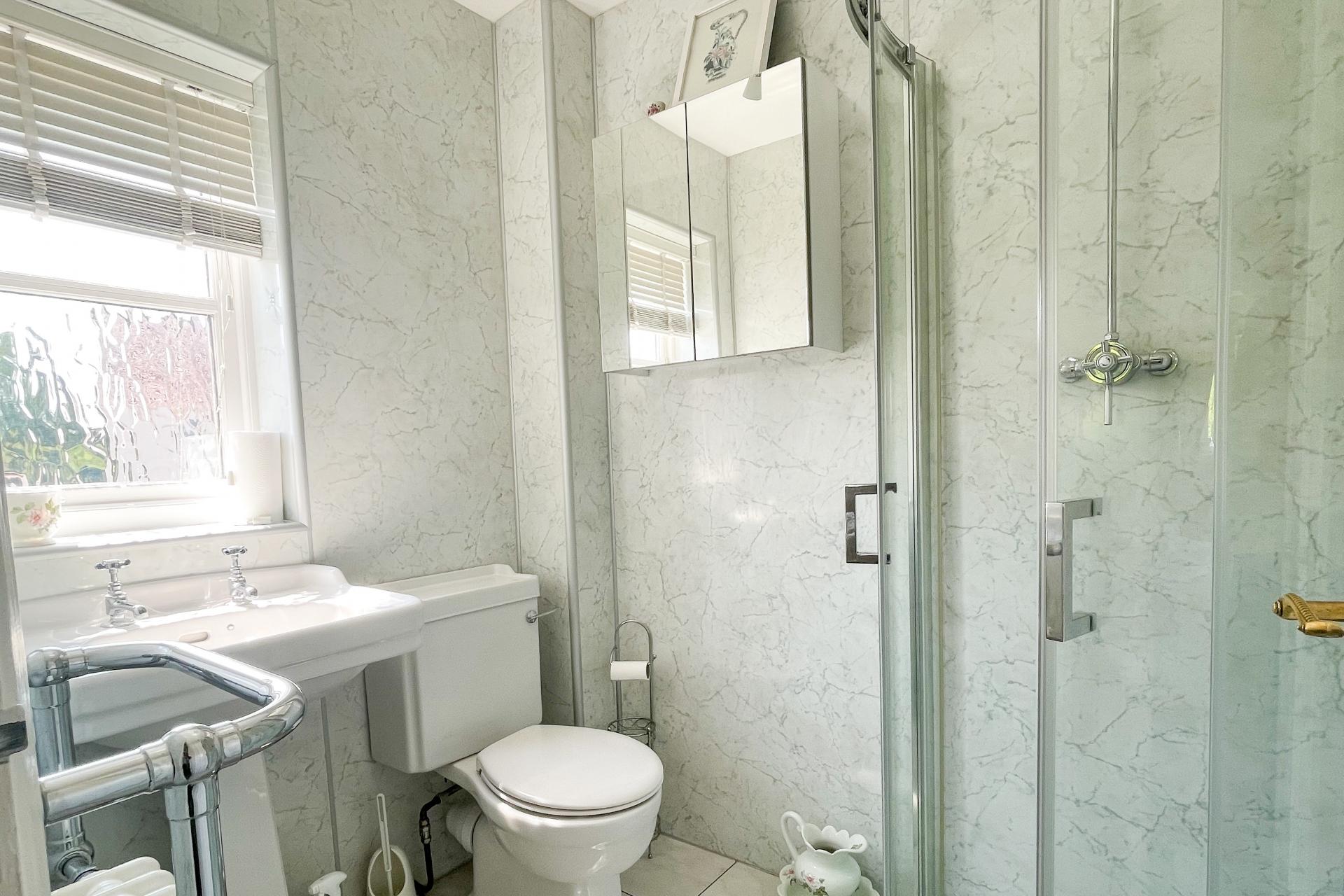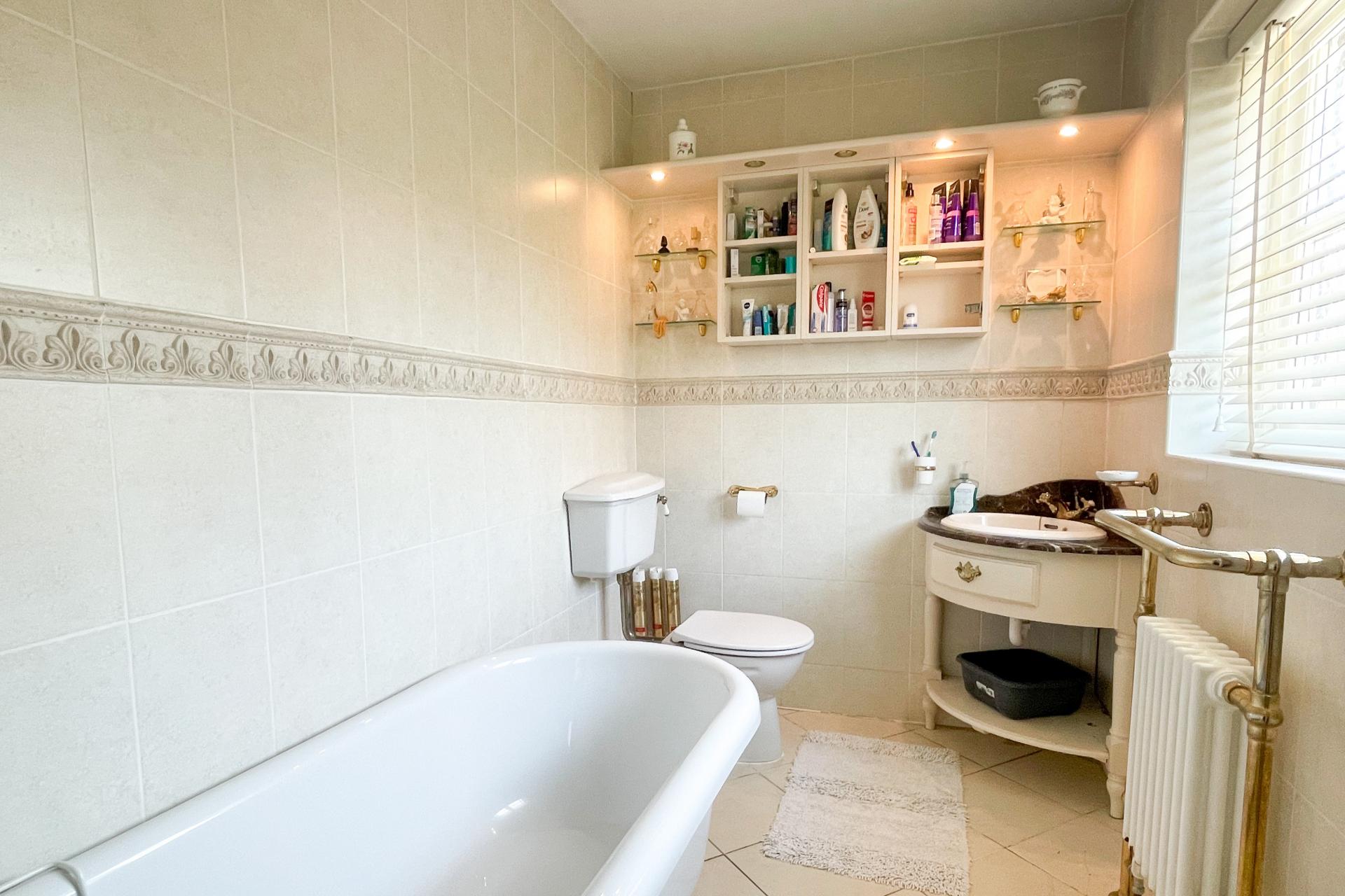 The master bedroom, situated at the rear of the house, is tastefully decorated in neutral tones, and enjoys a peaceful view of the garden. The master bedroom also comprises of built-in cupboard space and ensuite shower room. Bedroom two is a spacious double room with a front aspect, providing plenty of natural light, it comes with a double wardrobe for ample storage. Bedroom three benefits from a rear view. The fourth bedroom is a comfortable single room with fitted wardrobes with rear view. The family bathroom is bright and features cream decorative tiling, a standalone pedestal bath with brass fixings, and an up and over shower. It also includes a corner heritage sink with a marble top.