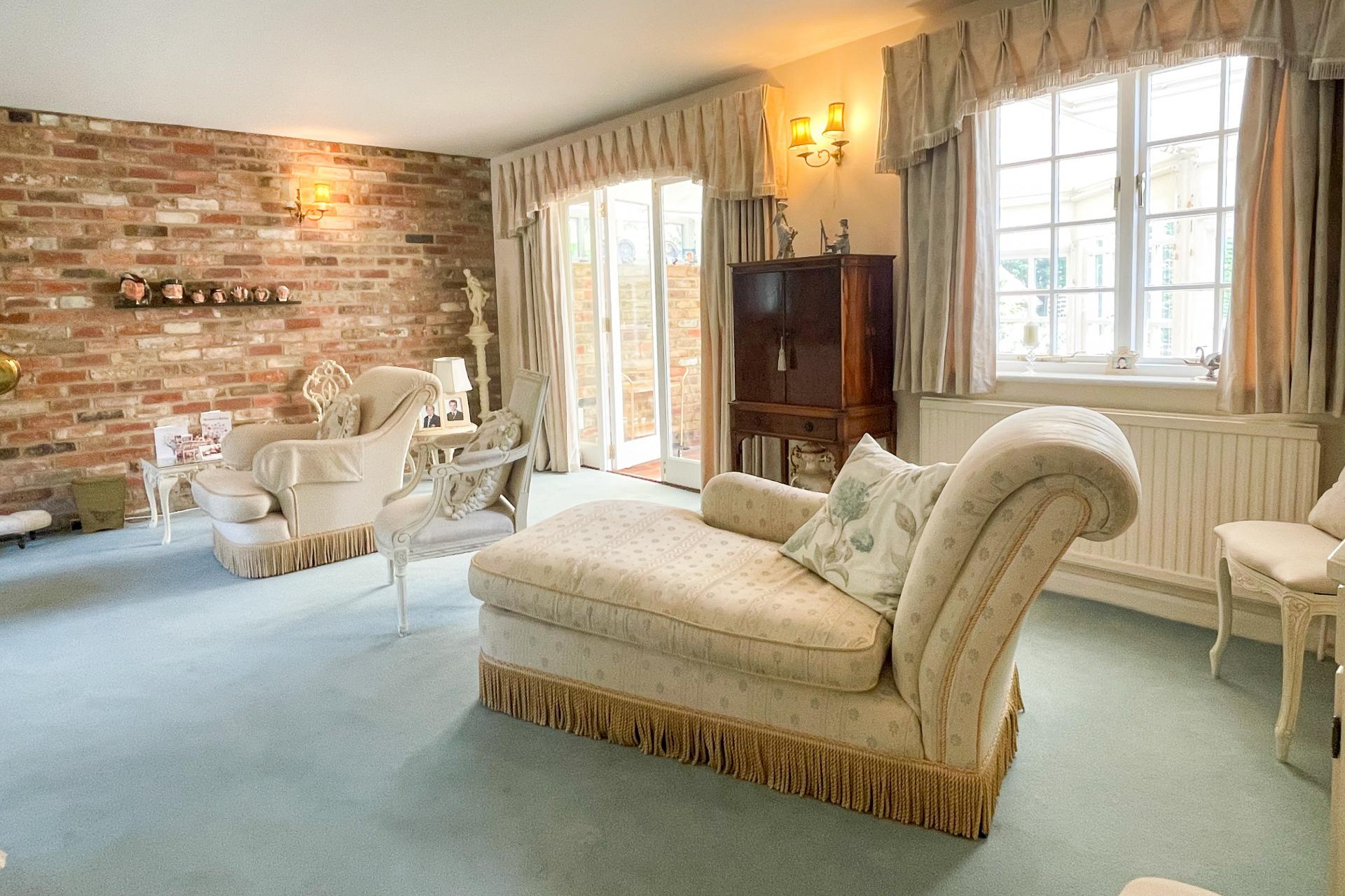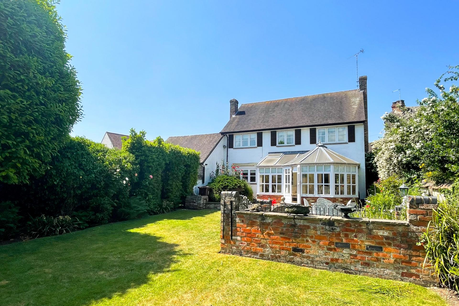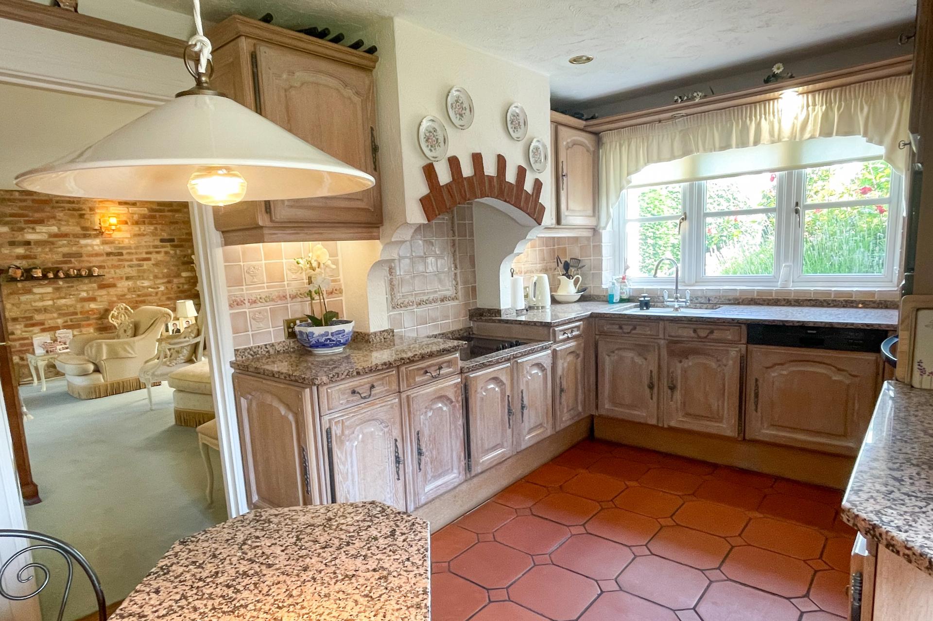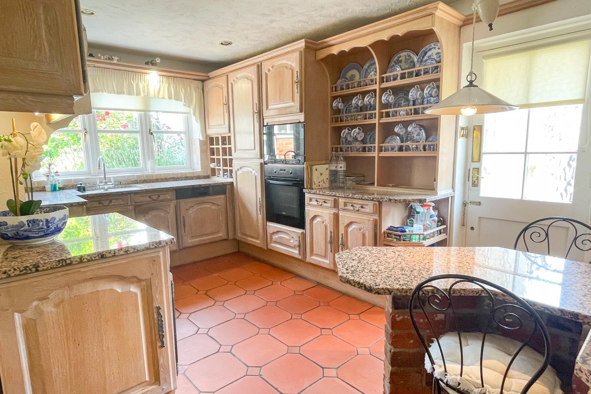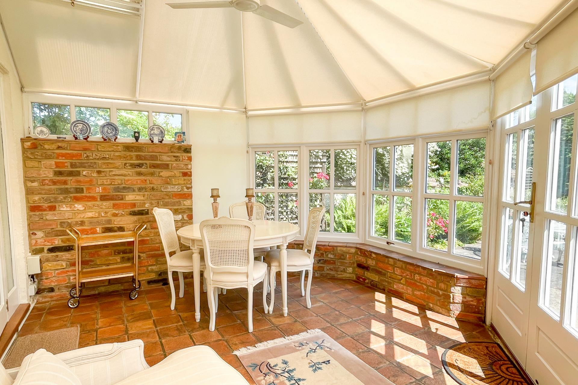 Nestled in between the bright and colourful garden awaits a four-bedroom home. On entering the property, you are welcomed into a bright and airy hallway, to which you'll find the study to the right-hand side, decorated in a similarly neutral style and featuring a front aspect. Leading off the hallway is the kitchen, which boasts of solid wood cupboards, an induction hob, granite worktop, a ceramic white sink with a built-in waste disposal and built in appliances, including a microwave, oven, fridge, and dishwasher. Leading off the kitchen is the spacious living/dining room. The Living room is flooded with lots of natural light, thanks to the large dual aspect windows. The room is complemented by the decorative brick wall with gas fire and oak beam. The double doors from the front room lead to a bright and inviting summer room, offering beautiful views of the spacious landscaped garden. The summer room is equipped with shades and a fan and showcases charming exposed red brickwork and terracotta tiles. Another set of double doors from the summer room opens on to a generous patio area.