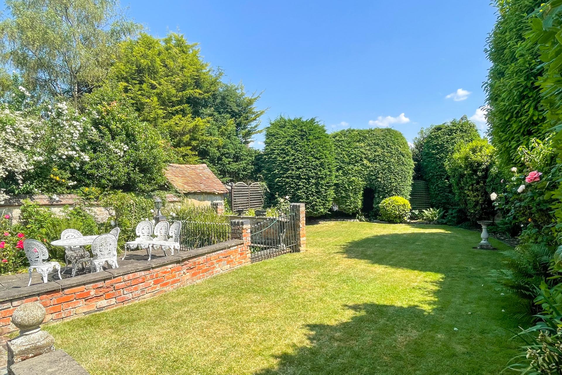 The property boasts of a double garage with an electric door. The large garden has mature plantings, such as roses, ferns, and hydrangeas, and a spacious patio area perfect for enjoying the sun. Iron railings surround a charming feature pond. The decorative brickwork adds a touch of elegance to the outdoor space. Through the hidden archway that leads to the Secret Garden, which offers a private sanctuary ideal for gardening, potting, and includes a greenhouse and a kitchen garden area. The property also offers off-road parking.