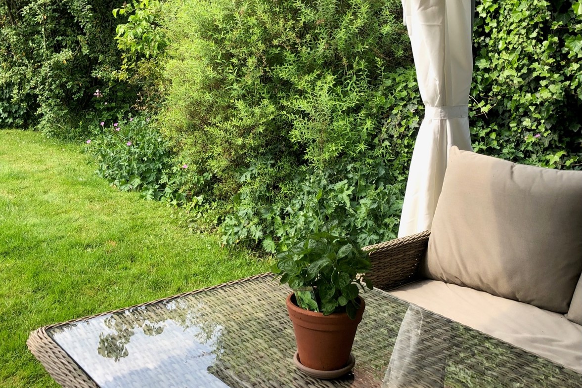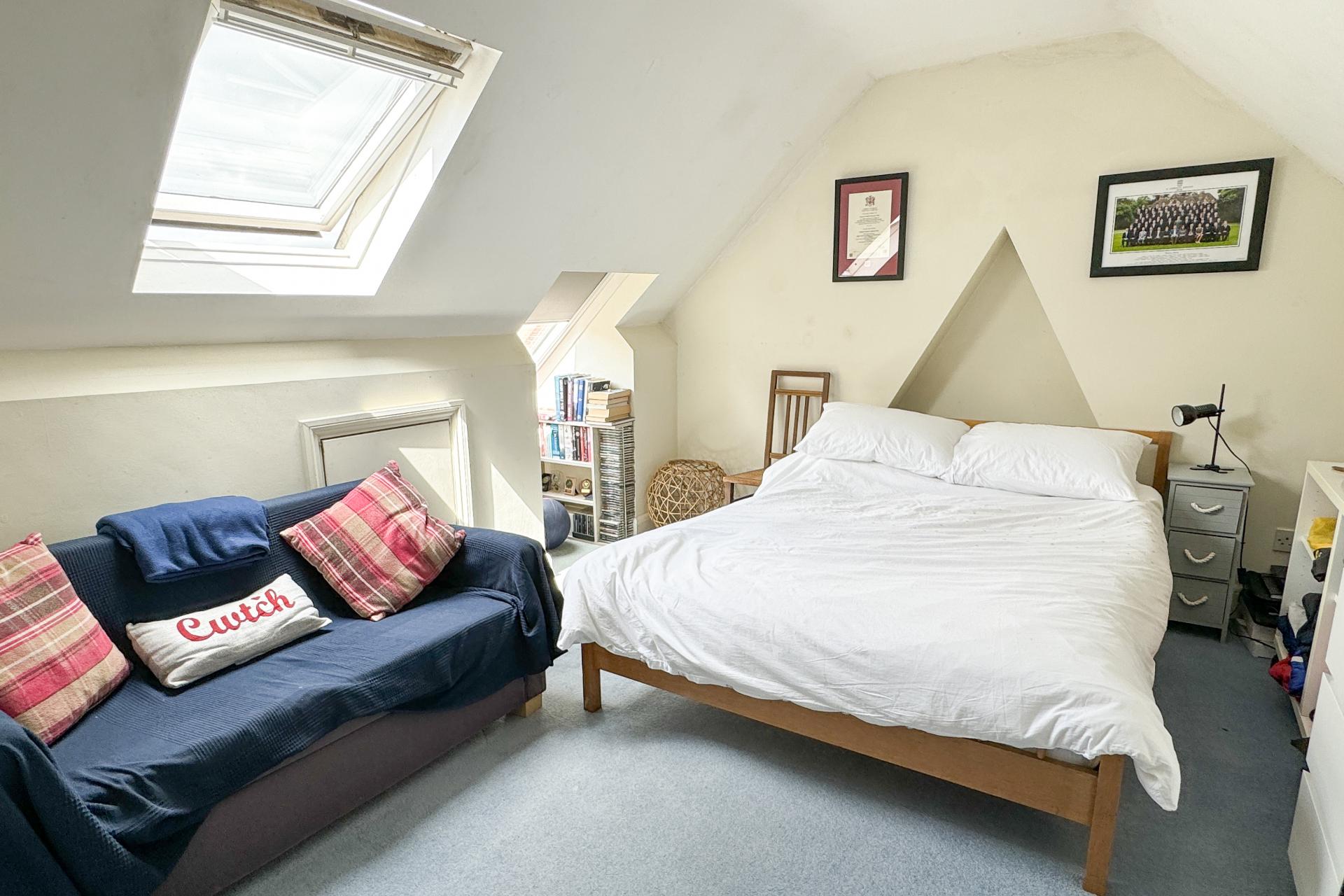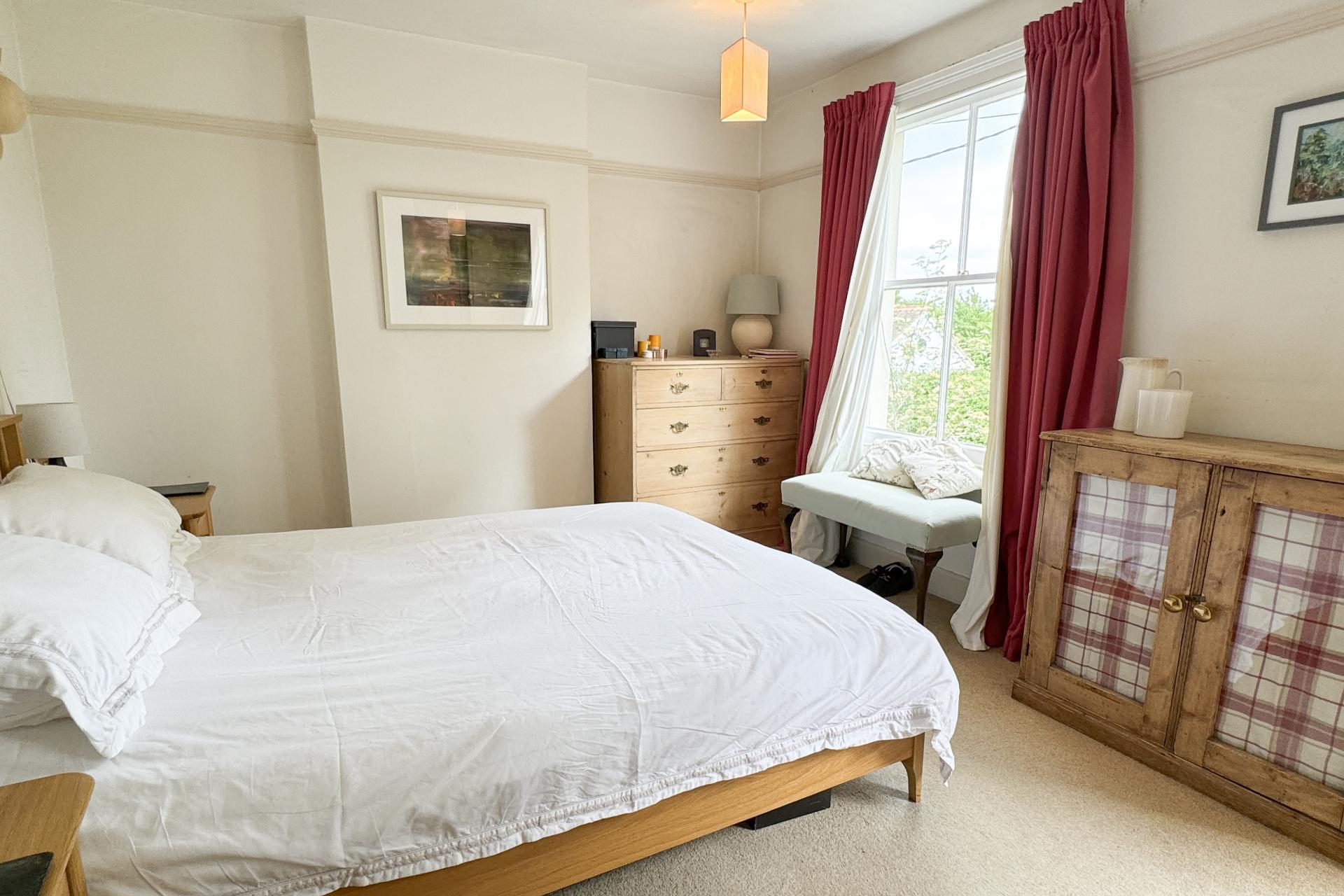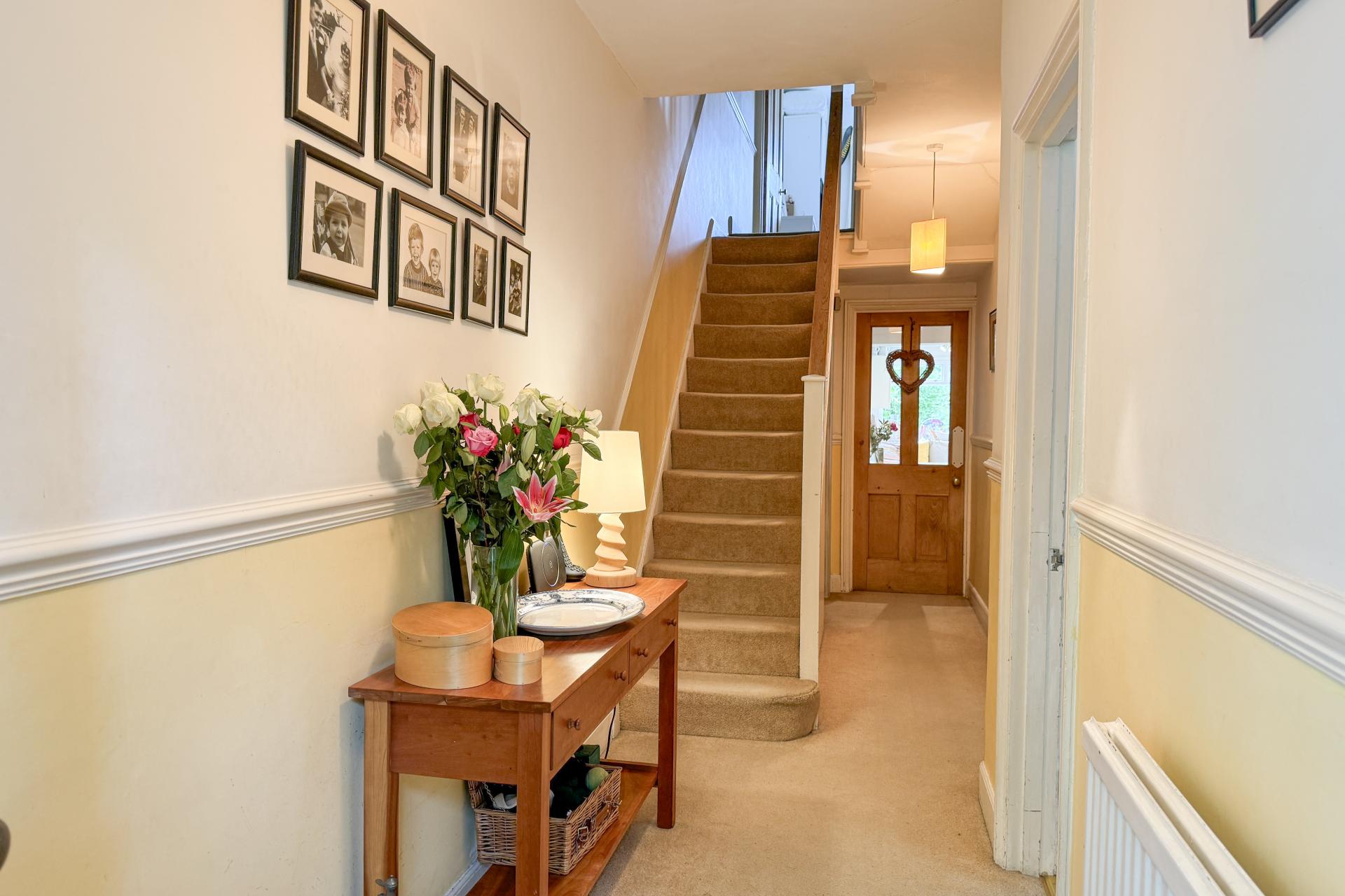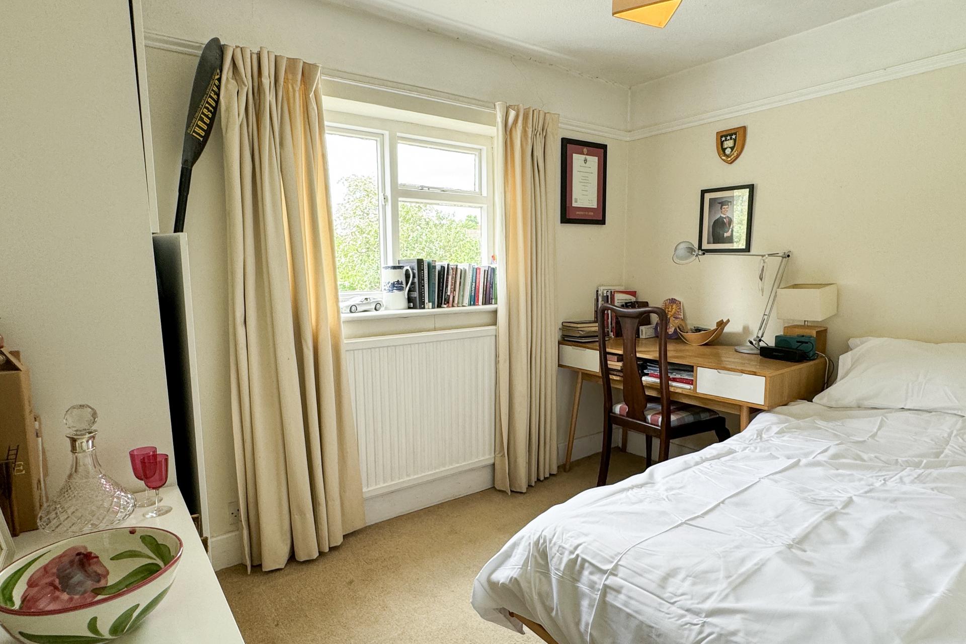 A second staircase leads to bedroom four, offering views over the expansive garden. Outside, the captivating garden boasts a sun terrace surrounded by large shrubs and trees, perfect for outdoor relaxation. The lush lawns and an elongated garden further contribute to the charm. At the bottom of the garden, you will find an adaptable home office or summer house retreat, complete with electricity, offers supplementary serene areas for both work and leisure.