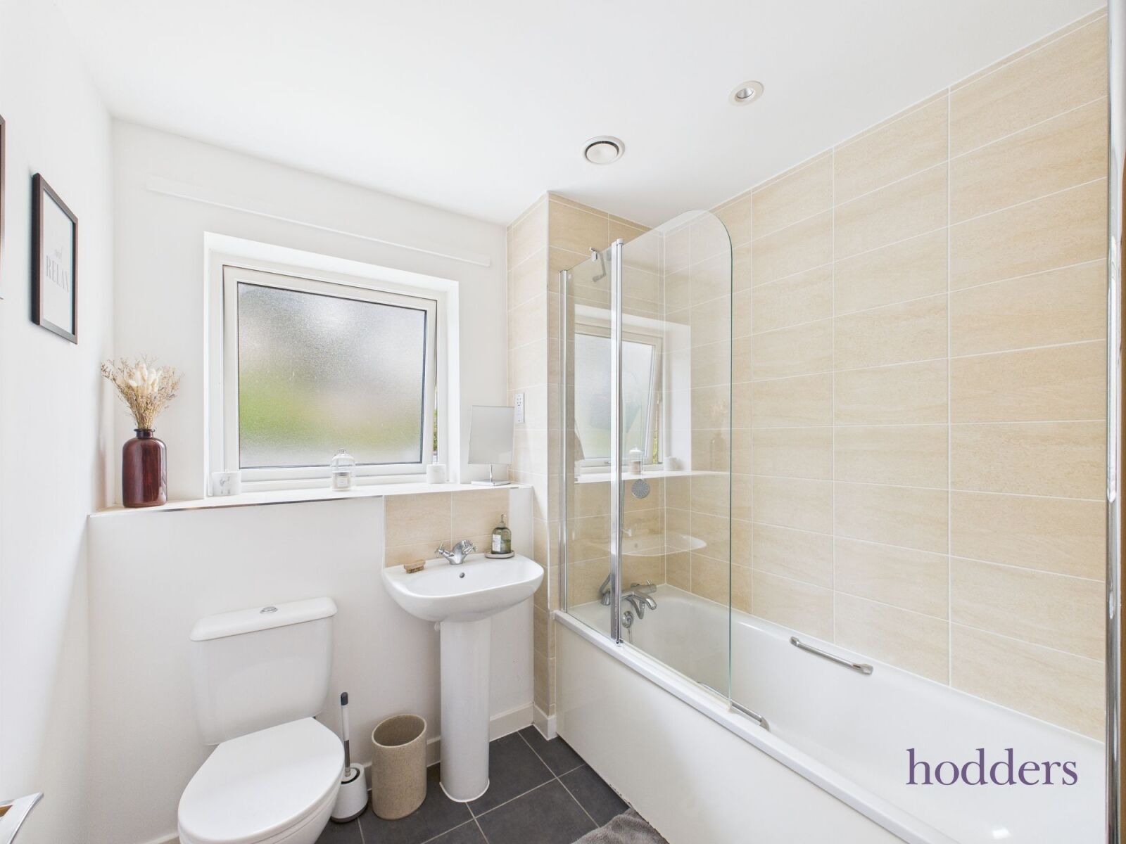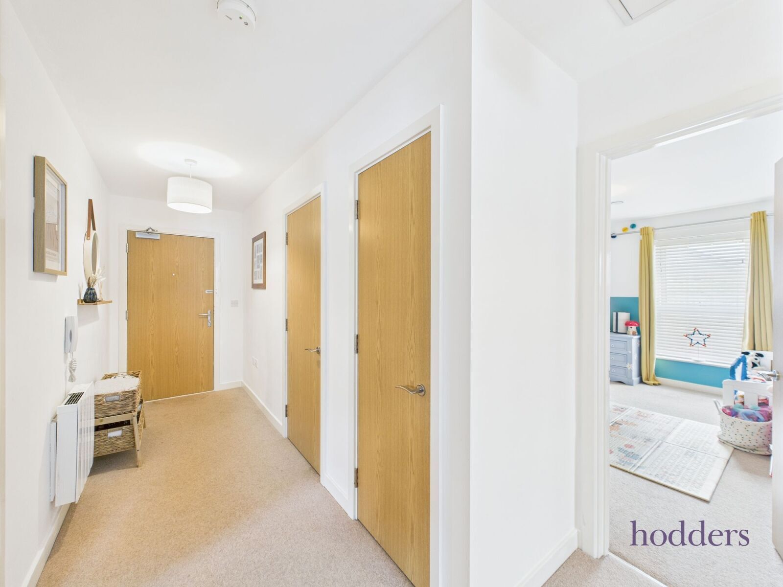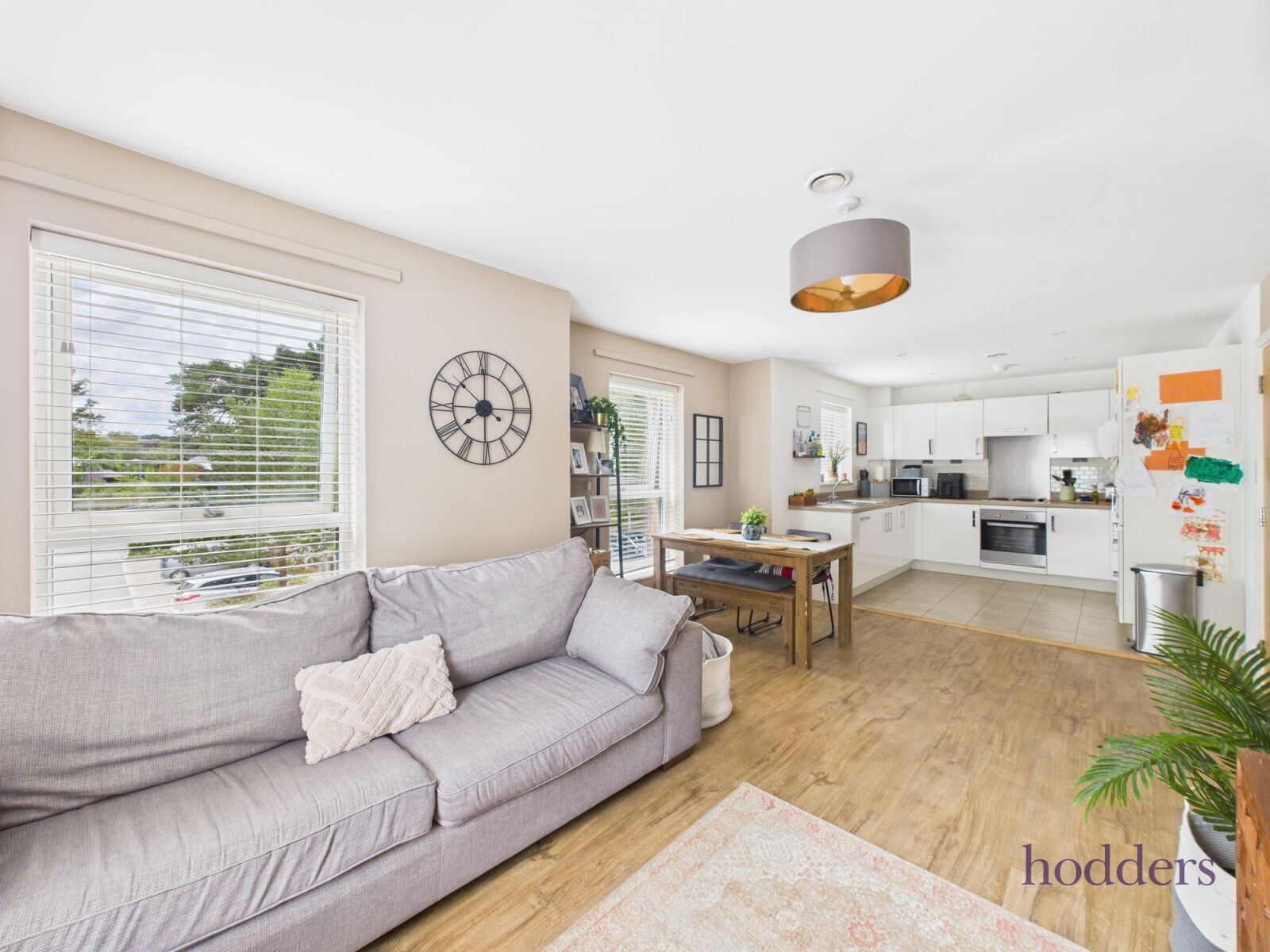 Positioned in a peaceful and well-maintained modern development, this spacious and beautifully presented two double bedroom first-floor apartment offers stylish, low-maintenance living just moments from Longcross Station. Built in 2018 and still benefiting from the NHBC warranty, the property combines contemporary design with practical features, ideal for first-time buyers, professionals, or investors alike. The heart of the home is the bright and airy open-plan kitchen, dining, and living area. Large double-glazed windows allow plenty of natural light to flood the space, while the neutral décor and modern finishes create a calm and welcoming atmosphere. The kitchen is thoughtfully designed with sleek cabinetry, integrated appliances, and ample countertop spaceperfect for both everyday meals and entertaining guests. The stylish family bathroom is fully tiled and features a modern white suite with a shower over the bath. Additional features include a secure entry system, gas central heating, excellent energy efficiency, and allocated off-street parking. Residents also enjoy access to attractive communal gardens, ideal for relaxing outdoors during warmer months. Ideally located for commuters, the property is just a short walk from Longcross Station, offering direct rail links into London Waterloo. Nearby road connections include the M3 and M25, providing easy access to Heathrow, central London, and surrounding towns. Local amenities, green spaces, and reputable schools are also within easy reach, making this a highly desirable place to call home.
