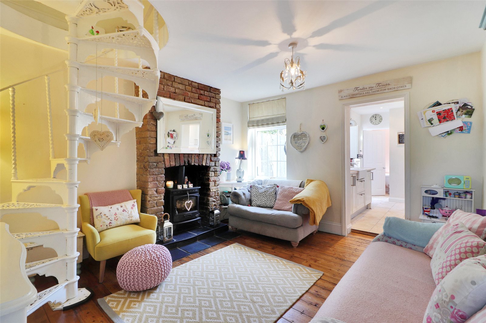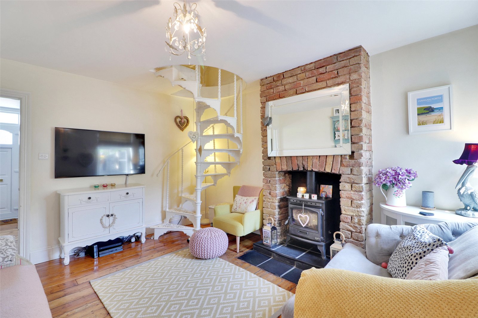 Immaculately presented, yet still retaining much of its period charm, the property boasts a spiral staircase, original wooden floorboards in the lounge and dining room and three beautiful, period fireplaces. Upon entering the property, you find yourself in the elegant dining room which leads into the cosy lounge with woodburning stove. Off this, there is a well appointed kitchen with a butler sink. At the rear of the house is a bathroom with an elegant roll top bath. A stable door from the kitchen leads to the easily maintained, smart garden with artificial lawn and recently replaced fences, perfect for young children. Upstairs are two double bedrooms, one of which has a period fireplace and built in wardrobes. Between the bedrooms sits a useful storage cupboard. A loft hatch with ladder leads to a fully boarded and useful loft space. The front of the house has beautiful open views of the village allotments, with the master bedroom and dining room windows perfectly showcasing the stunning sunsets.
