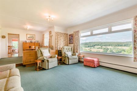 Lounge - 5.31m x 4.39m (17'5 x 14'5) - Exposed stone fireplace, two skirting radiators, TV point, front aspect picture window offering stunning elevated views through the valley. Glazed wooden door into: