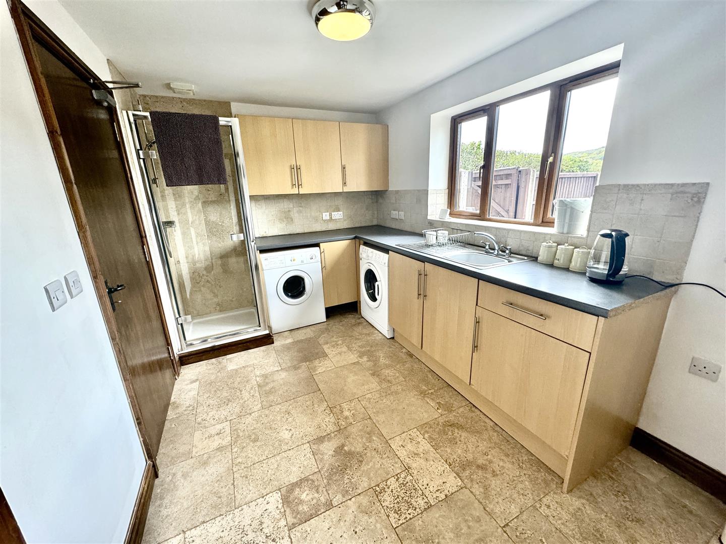 Utility/Shower Room - 3.61m x 2.39m (11'10 x 7'10) - Stainless steel sink unit, mixer tap, cupboards under, range of base and wall mounted units, fitted shower cubicle and tray, shower, tiled surround, plumbing for washing machine, tiled flooring, underfloor heating, side aspect window.