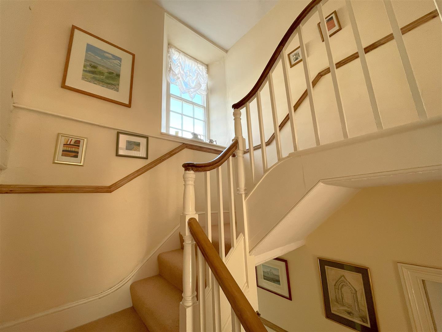 There is a further, separate wc with window and a reading room which would make a great study. An alcove in this room used to be the front entrance for the children when the property was originally a boarding school and the current owners have retained the original wooden hooks where they would hang their coats! The landing is another nod to the property's history with a beautiful winding staircase and is generous in size providing a spacious feel.