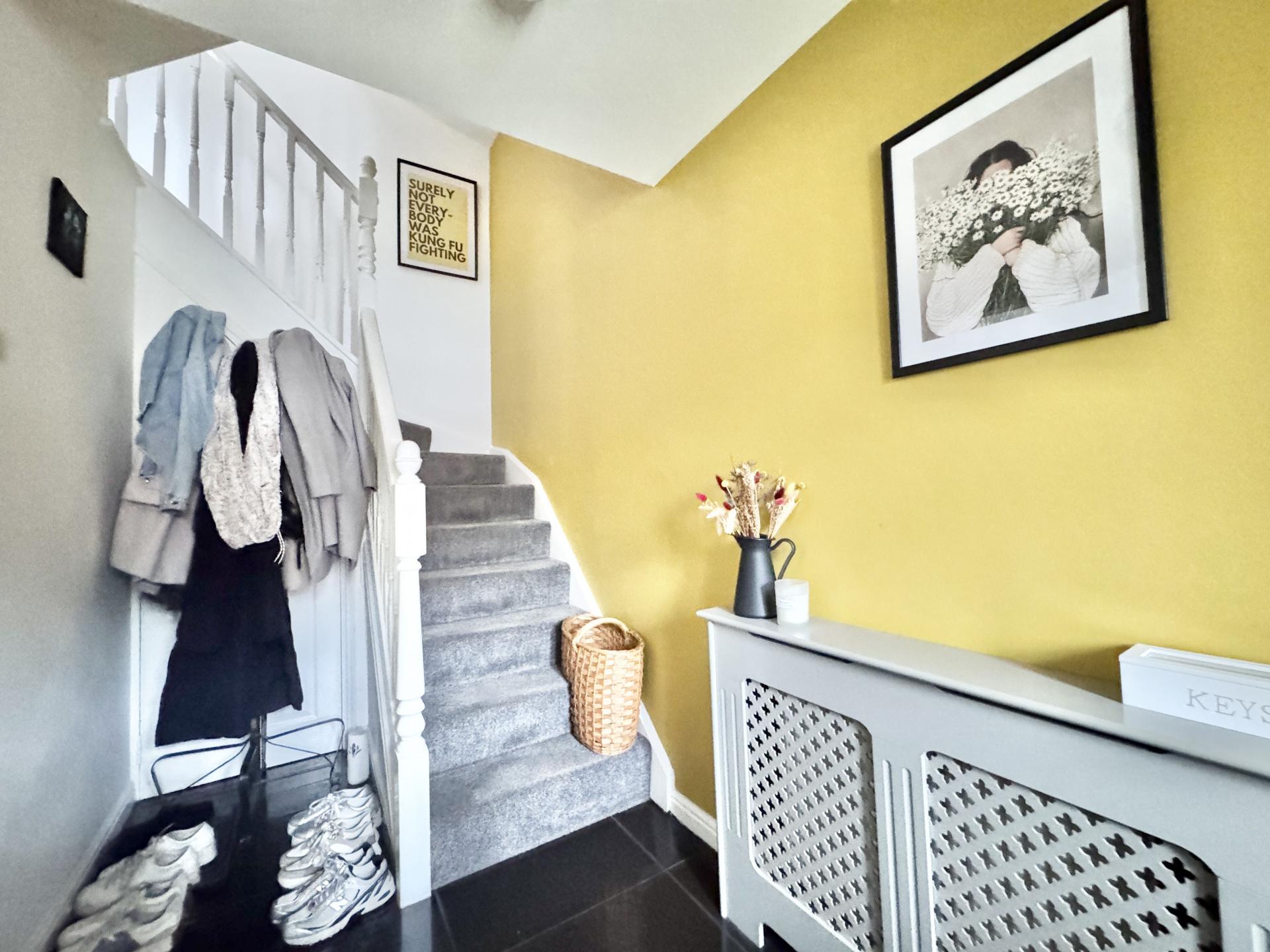 uPVC window to the front elevation, access to the first floor accommodation and a radiator