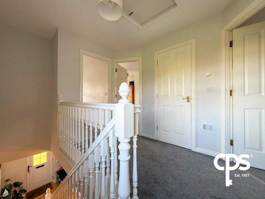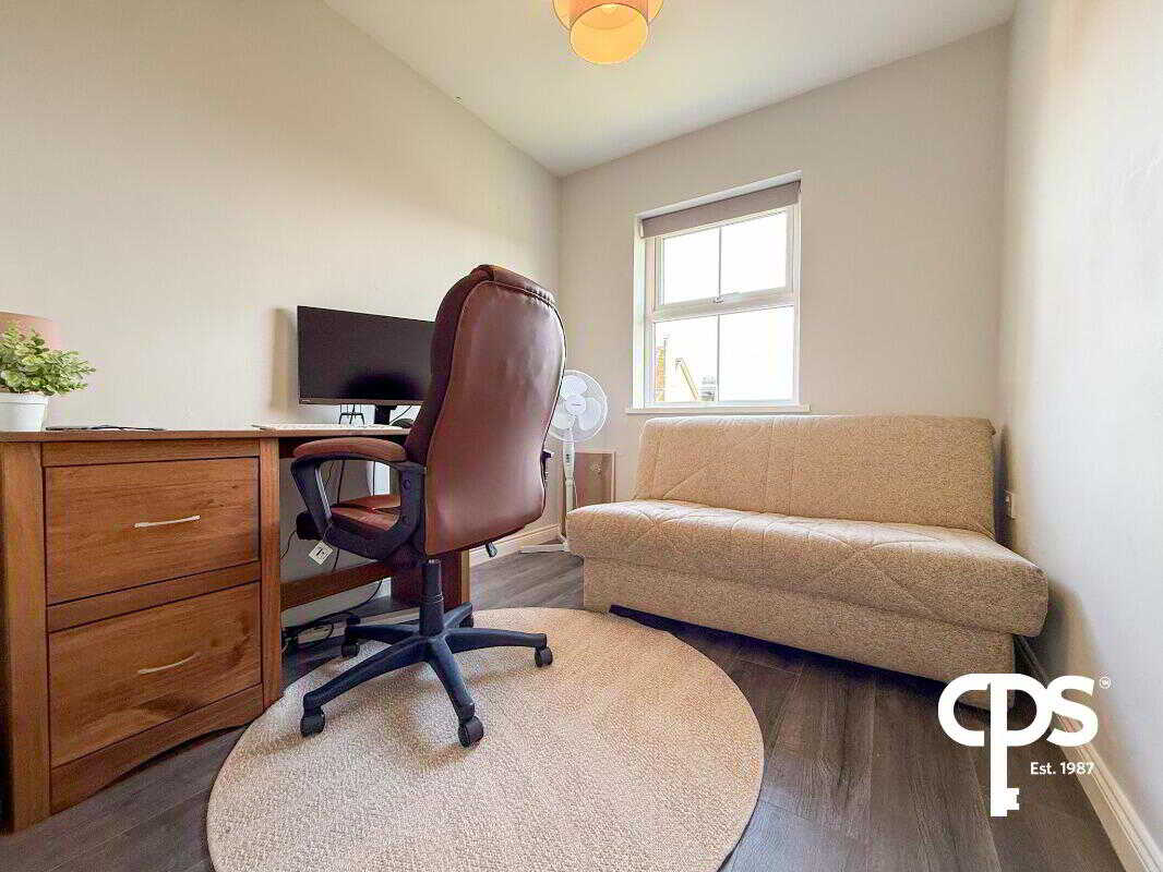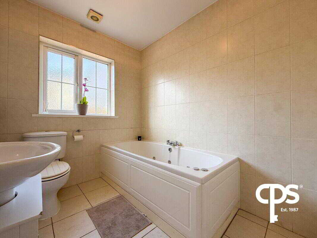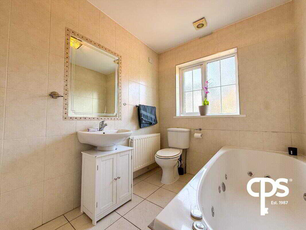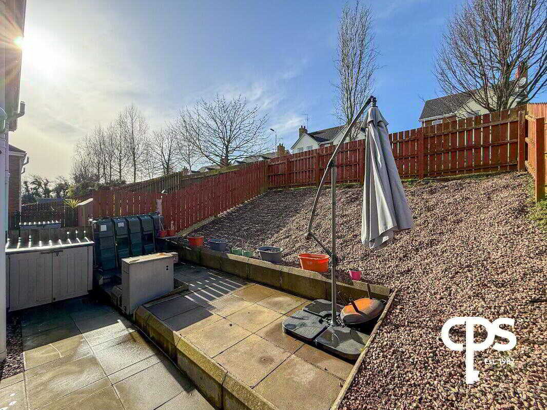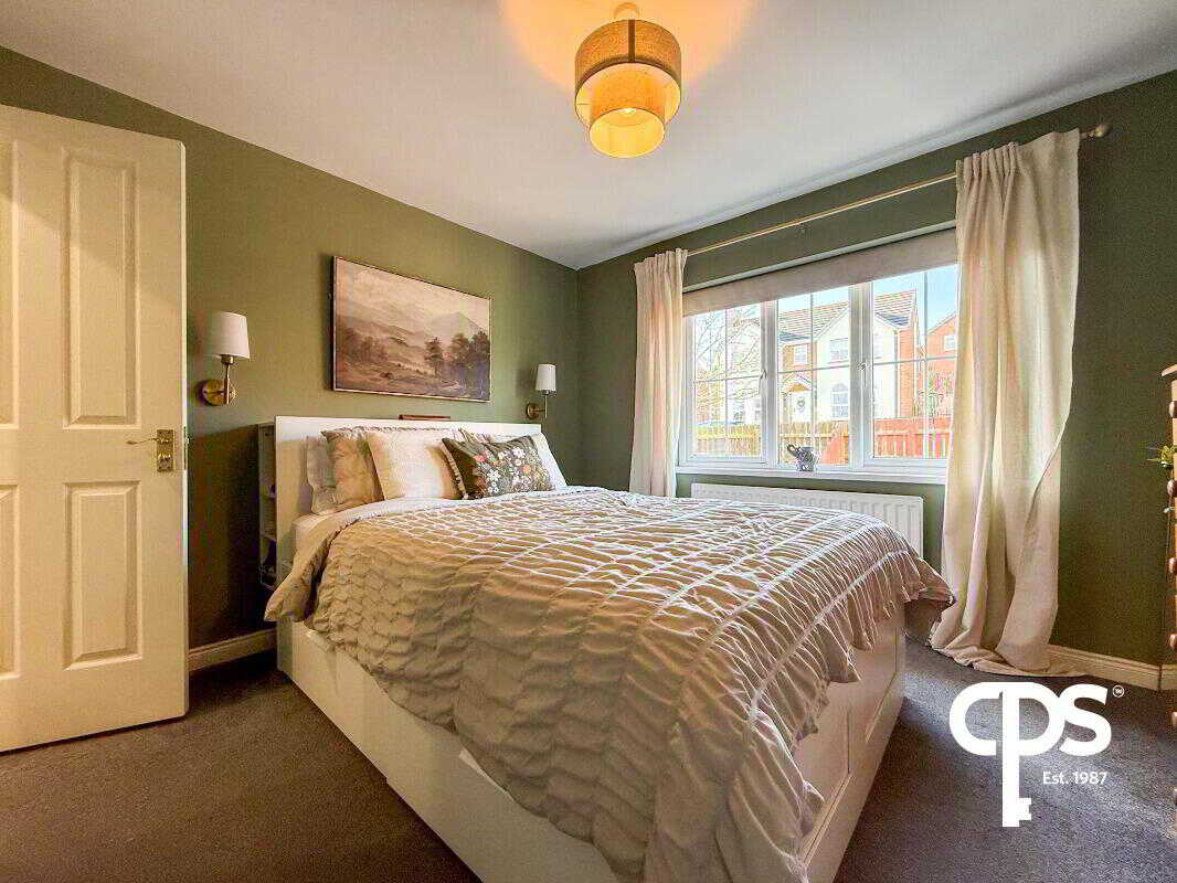 Newly fitted with feature wall tiles, corner shower, WC, vanity sink unit, radiator and LED mirror, creating a modern and stylish private space.Bedroom 2 – 3.98m x 2.76mFront-facing double bedroom with carpet flooring and double radiators. A bright and generous room ideal as a guest bedroom or children’s room, with ample space for wardrobes and additional storage.Bedroom 3 – 2.27m x 2.98mFront-facing bedroom with laminate flooring and double radiators. Well-proportioned and versatile, suitable as a child’s bedroom, nursery, dressing room or home office.Family Bathroom – 2.67m x 1.98mLocated on the first floor, this fully tiled main bathroom comprises a jacuzzi bath, WC and wash hand basin. A well-appointed space designed for both relaxation and everyday family use.External FeaturesRear GardenSouth-west facing garden finished with concrete slabs and stone bank for a low-maintenance outdoor space that enjoys excellent natural light throughout the day — perfect for outdoor dining or relaxing.Front GardenGrass area to the front with newly installed driveway to the side providing off-street parking for two cars.This attractive home offers comfortable, modern living in a sought-after residential setting and is ready for immediate occupation..