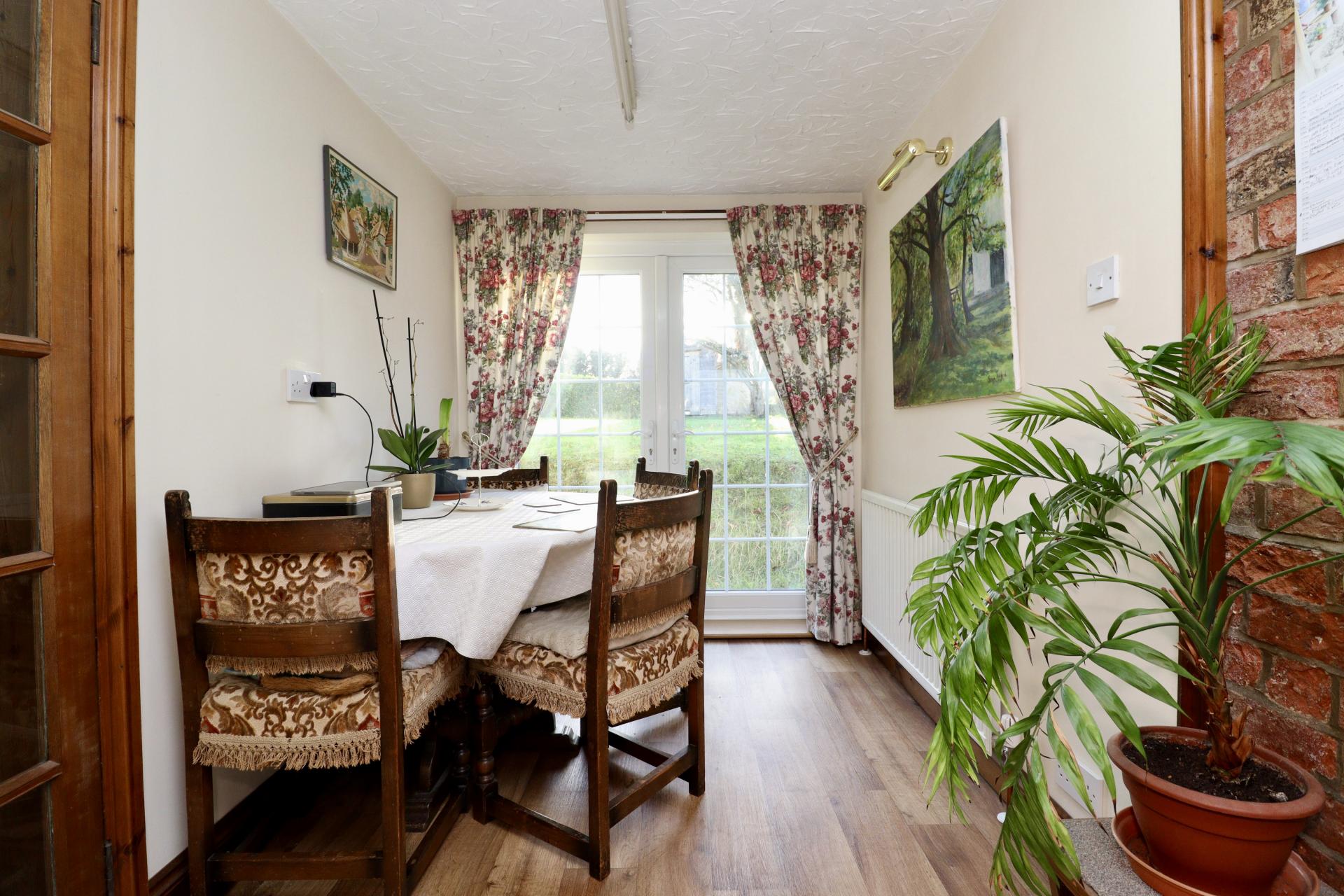 - The lean-to provides covered access to the garage and garden, ideal for storage or boots/coat space.