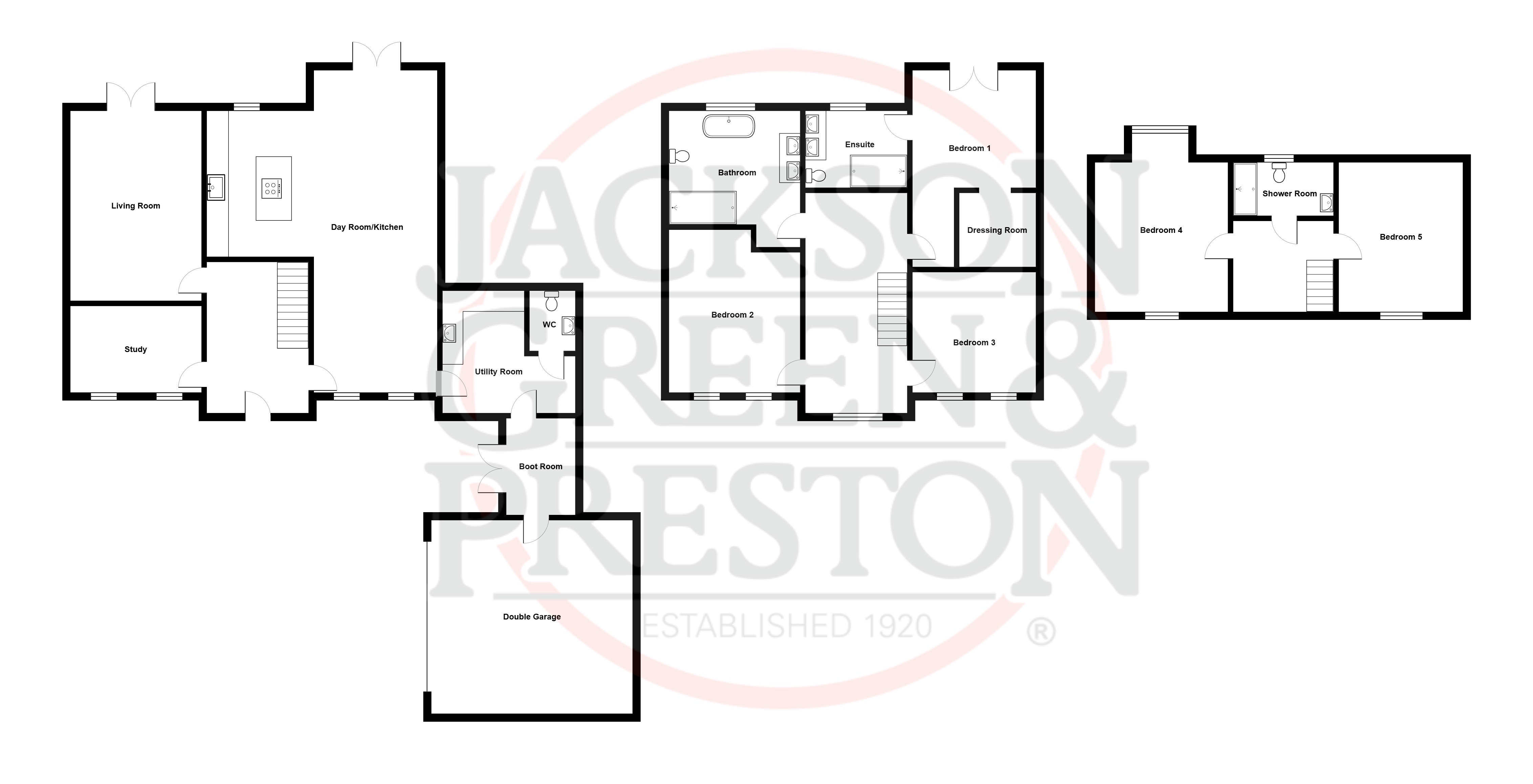 - Five spacious bedrooms, including a luxurious principal suite