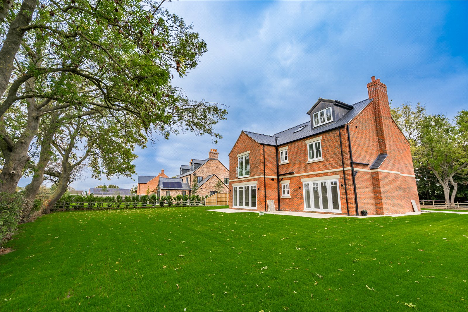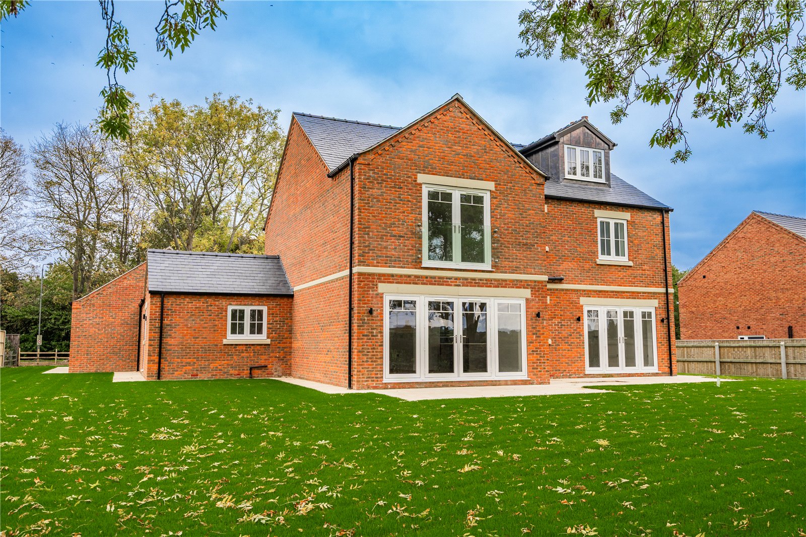 - Large driveway, double garage, and landscaped lawned garden