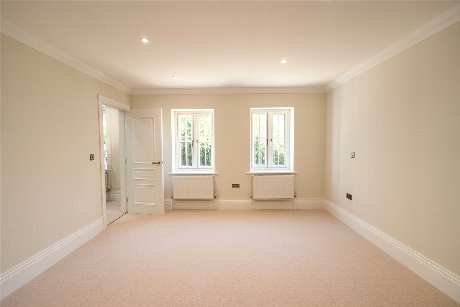 - Principal bedroom features Juliet balcony with field views