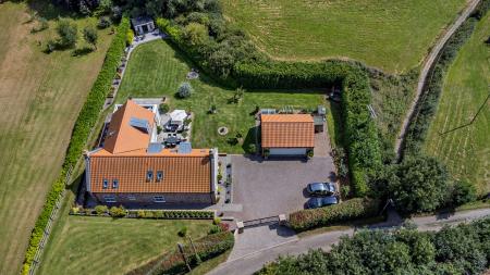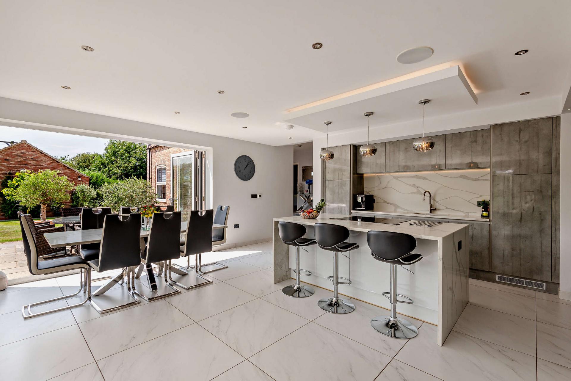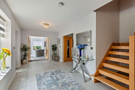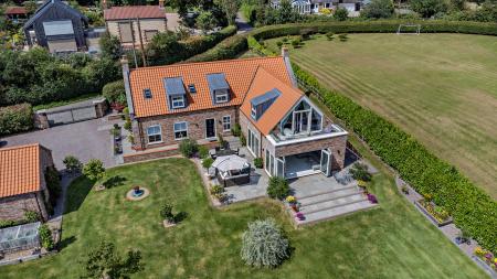 Standing in a spacious plot within a sought-after village setting and close to Louth historic former canal, this individual detached house which was completed 2019 by the current owners and offers extensive and high-quality living accommodation. Thoughtfully designed with the modern family in mind, the property offers spacious rooms over two floors, underfloor heating throughout the ground floor and a spectacular living kitchen which extends out into the rear garden & having bifold doors, seamlessly blends indoor with outdoor living.