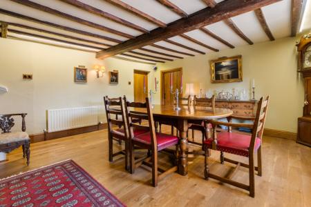 A rare opportunity to acquire a beautifully restored historic detached house, thoughtfully renovated by the current owners and set within approximately 1.8 acres of mature grounds (sts). This characterful home offers an exceptional blend of period charm and modern comfort, perfectly positioned with views over a neighbouring nature reserve. A sweeping driveway leads to the main house and a remarkable grade II listed two storey barn, offering exciting potential for a variety of alternative uses, subject to any necessary local authority consents. Inside, there is a wealth of original features including exposed beams, traditional fireplaces and period detailing throughout. The spacious accommodation is arranged over two floors, ideal for family living. Externally, the grounds offer expansive lawns, mature trees, and a pond. EPC rating F.