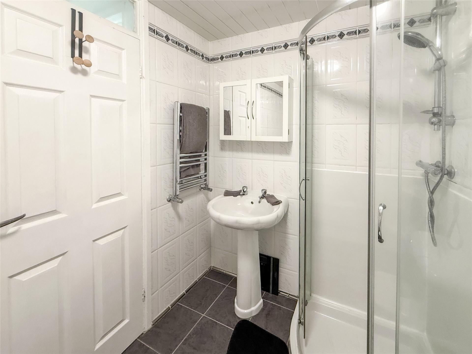 The first floor is home to three well-proportioned bedrooms. The main bedroom is particularly attractive, benefiting from fitted, mirror-fronted sliding wardrobes that provide generous storage while maintaining a sleek, modern finish. The additional bedrooms offer flexibility, making them ideal for children, guests, or home office use. A family bathroom completes the first-floor accommodation, fitted with a bath, corner shower enclosure, WC, and hand wash basin.