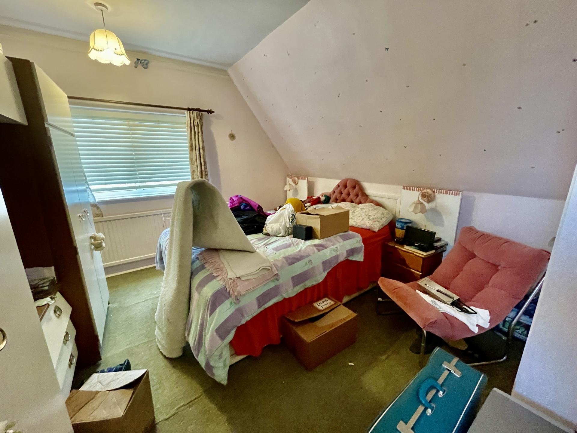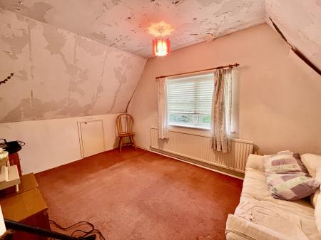 BEDROOM 1 9' 10" x 13' 5" (3.01m x 4.09m) UPVC double glazed window to the side elevation, skimmed ceiling, centre light point, radiator, storage cupboards into eaves, door into:
