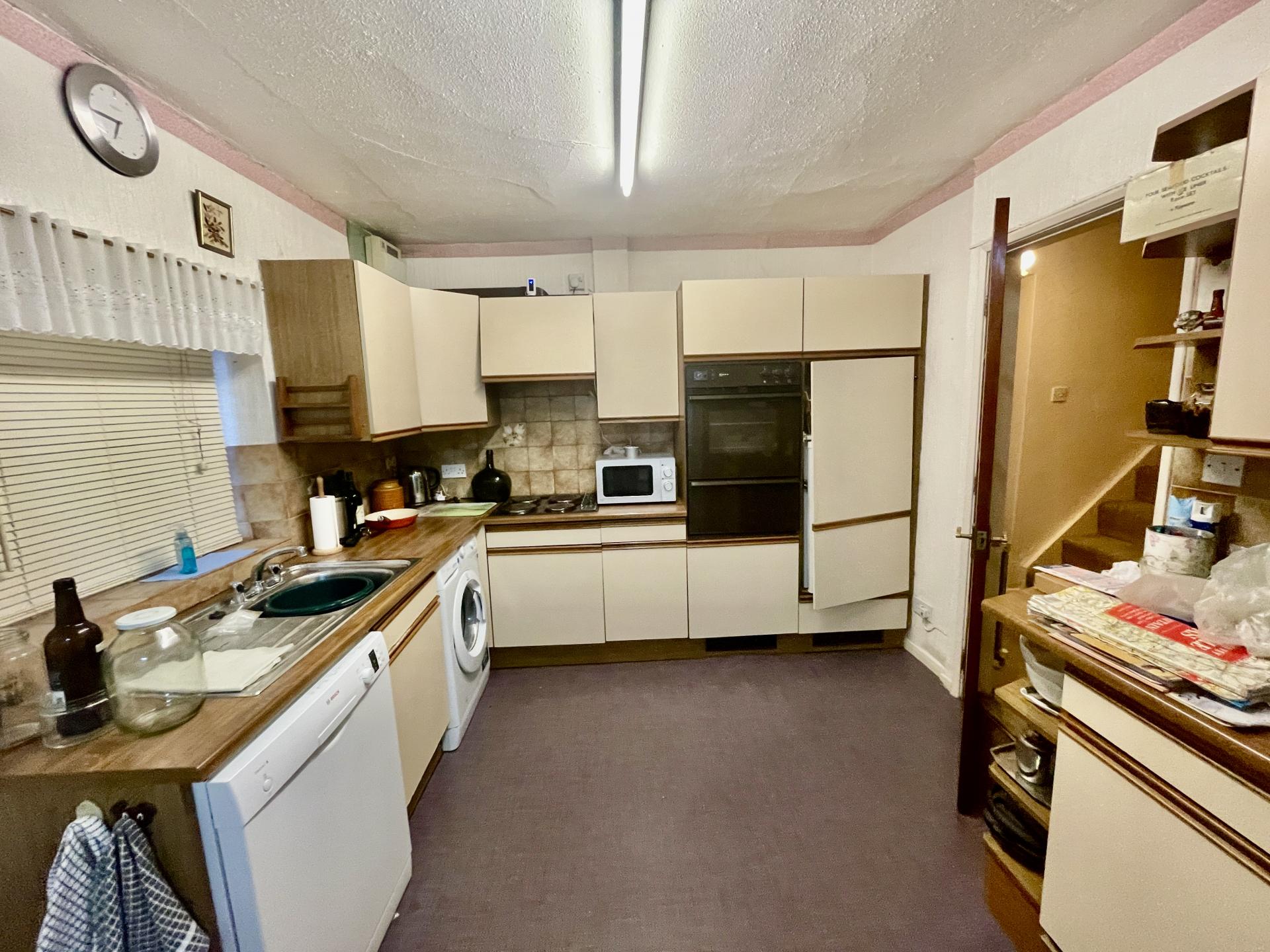 KITCHEN DINER 9' 8" x 18' 9" (2.97m x 5.72m) Glazed window to the rear elevation, wooden glazed door leading into Conservatory, UPVC double glazed window to the rear and side elevations, textured ceiling with strip light, skimmed ceiling with centre light point, radiator, fitted with a wide range of base and eye level units, work surfaces over, tiled splashbacks, inset electric hob, integrated Neff fan assisted electric oven, plumbing and space for washing machine and dishwasher, inset stainless steel sink, cupboard housing floor standing oil fired boiler, glazed door into: