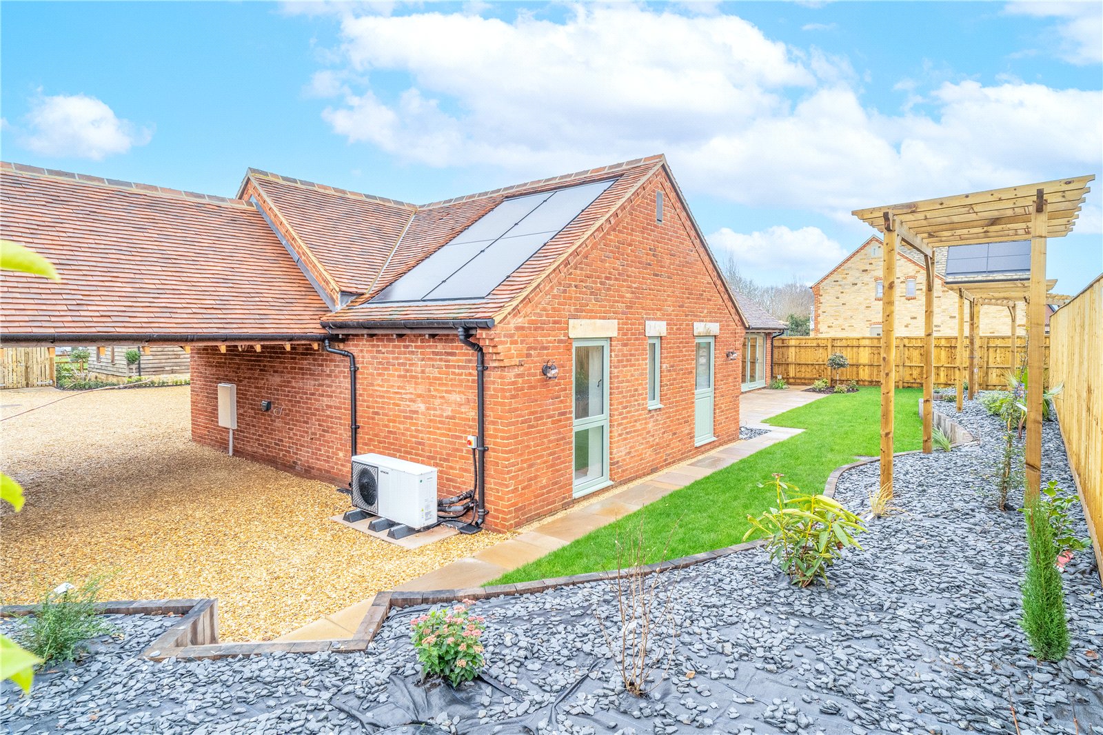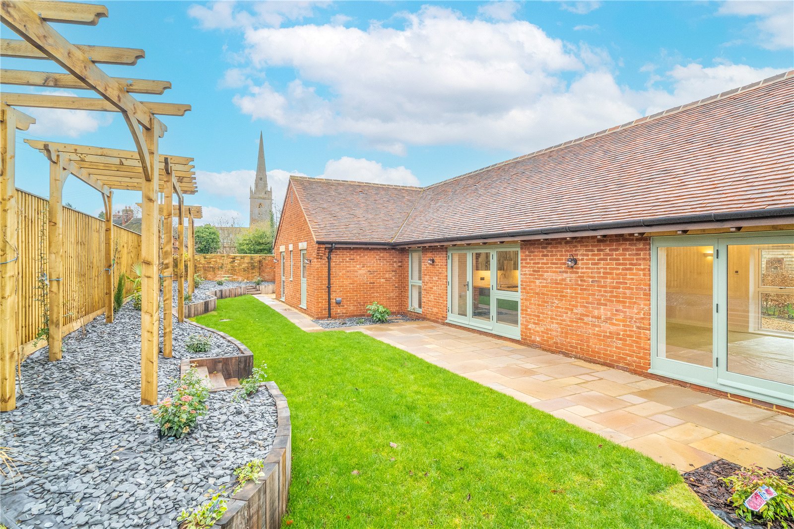 Tucked away in a quiet courtyard setting in the centre of this pretty Warwickshire village and just a short walk to the village shop, post office and traditional pub, 2, Old Henneys Farmyard is a thoughtfully designed, single storey dwelling that has been beautifully crafted to offer the perfect combination of traditional, barn style features with modern living. High, vaulted ceilings with exposed oak trusses in the main living area with the added benefit of a log burner flow through to a bespoke, hand built kitchen with solid oak worktops and Belfast sink.
