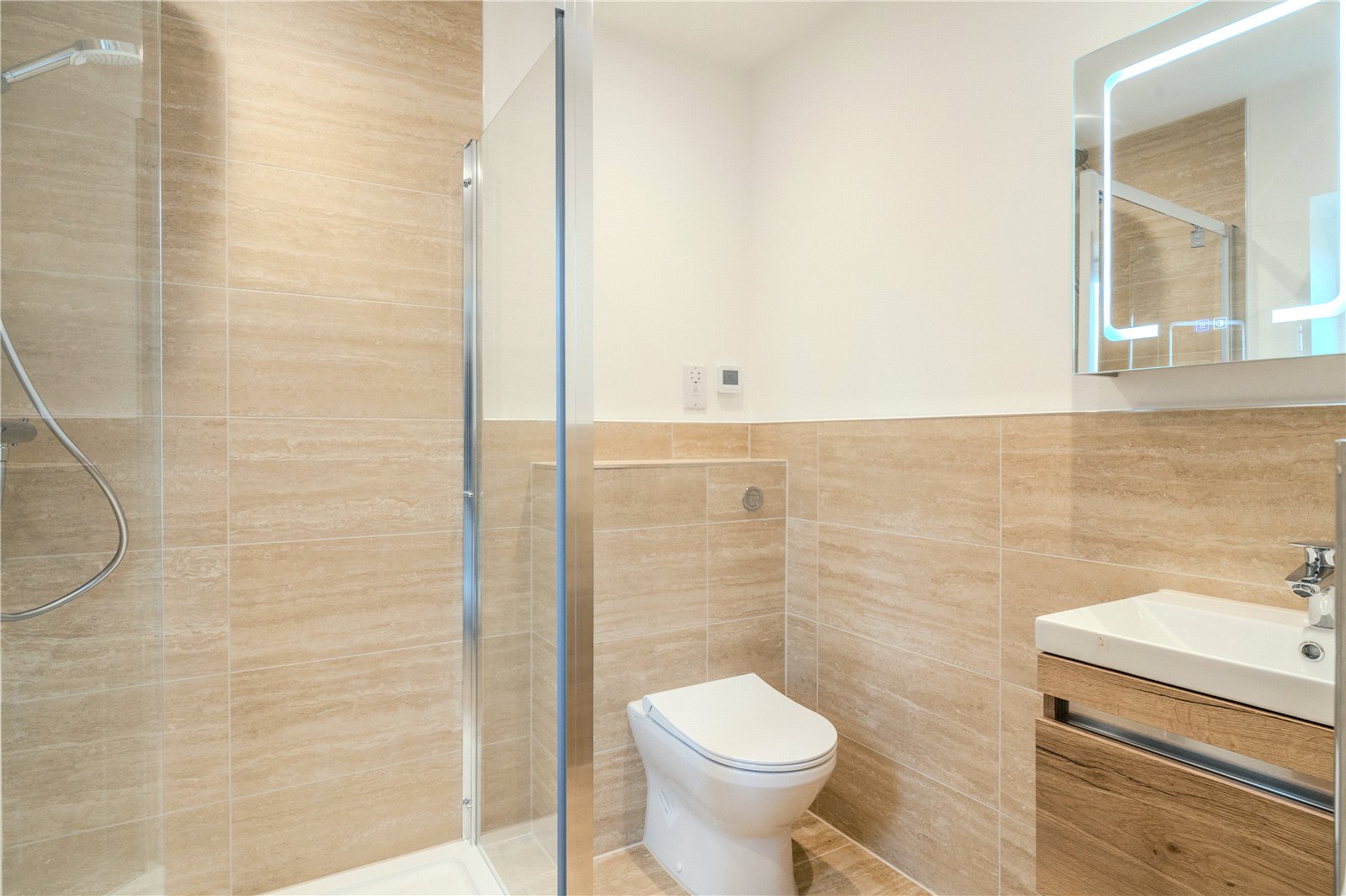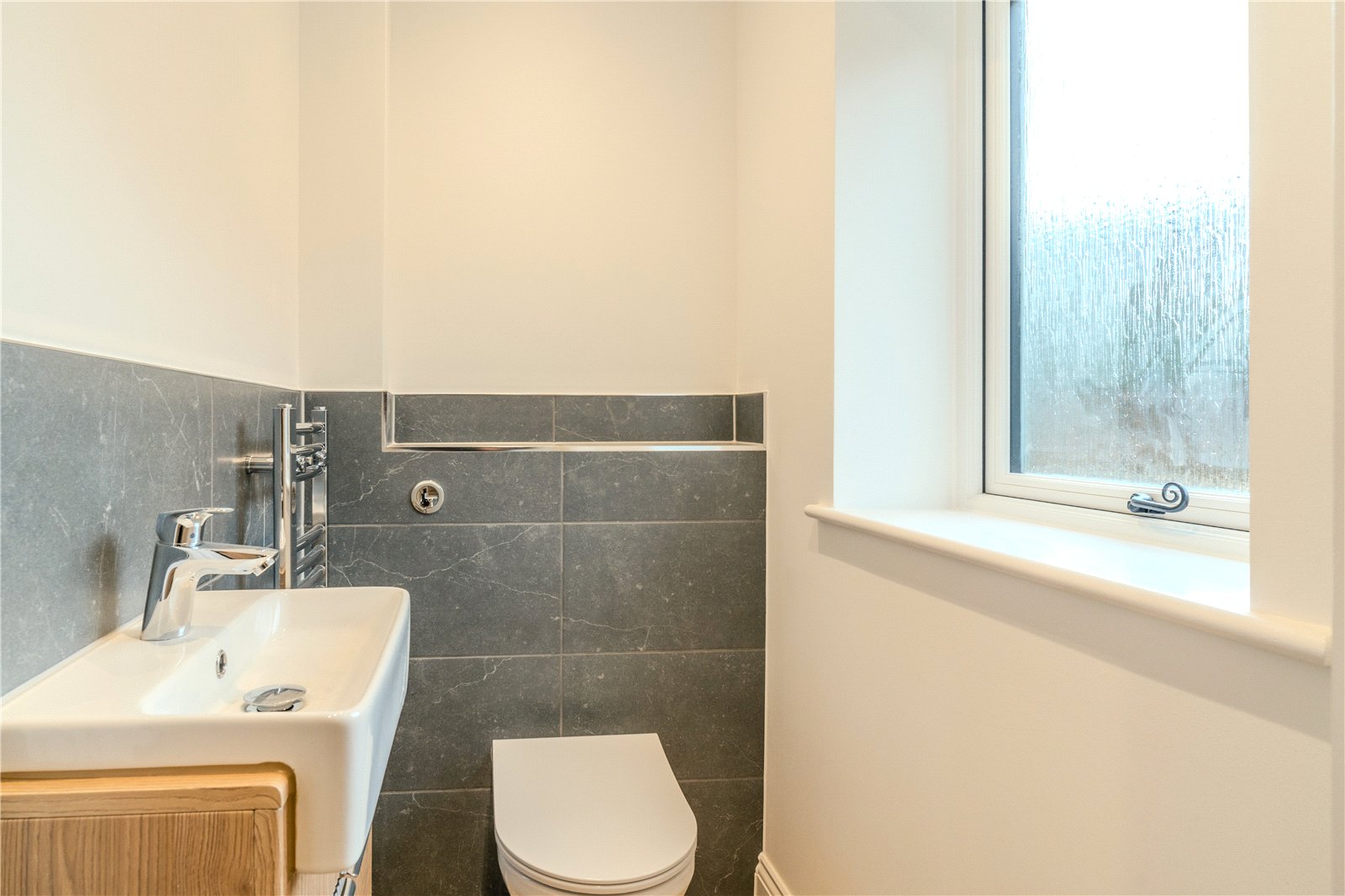 There are three bedrooms – the primary bedroom with ensuite shower room and the option to have fitted wardrobes if required. The main bathroom provides a full size bath and separate shower cubicle.