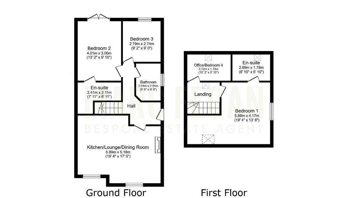 - Freestanding bath, drench head showers, wall hung vanity units, heated chrome towel rails & LED mirrors