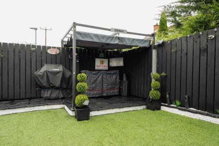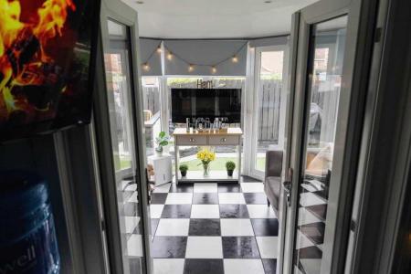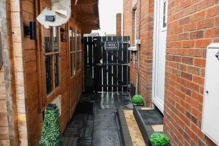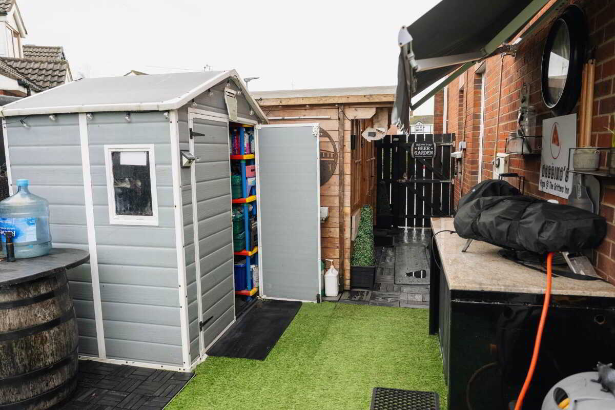 Step out back, and you`ll find your new happy place. My garden has artificial grass, a raised patio, and loads of space to entertain. But the real showstopper? My Dunster House log cabin, transformed into a home bar ready for BBQs, parties, or those Friday nights that turn into Saturday mornings.