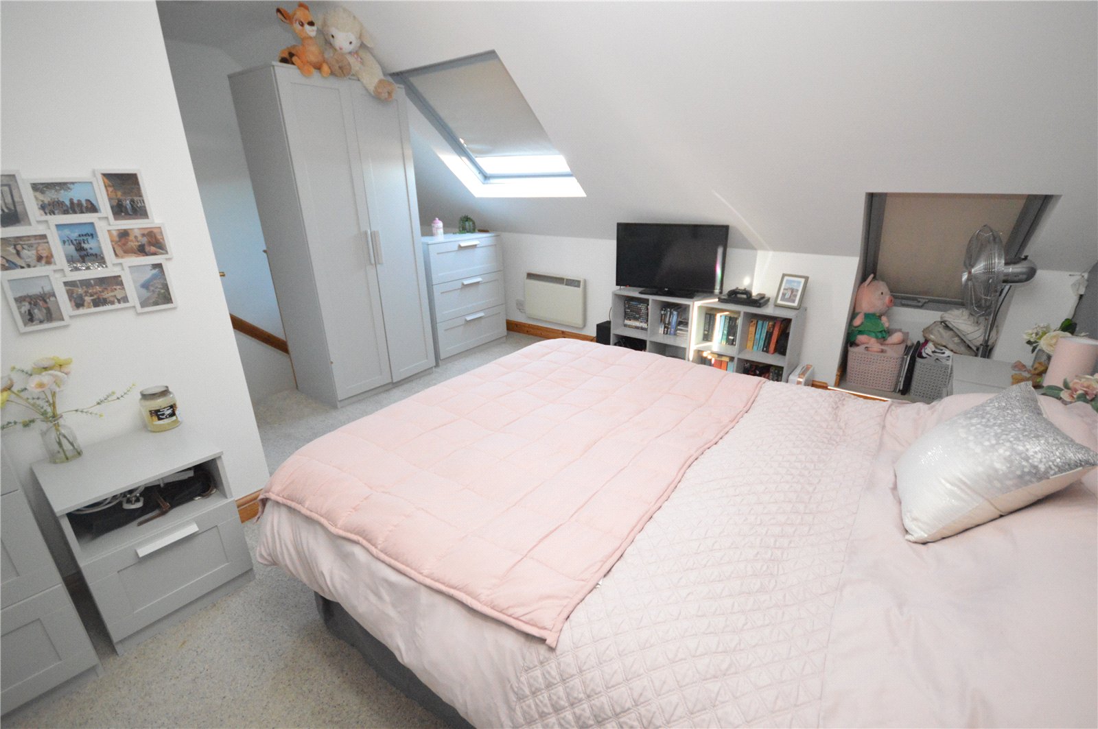 The second floor is home to an impressive principal bedroom suite, boasting skylight windows, eaves storage, and a modern three-piece en-suite shower room, creating a private and tranquil retreat.