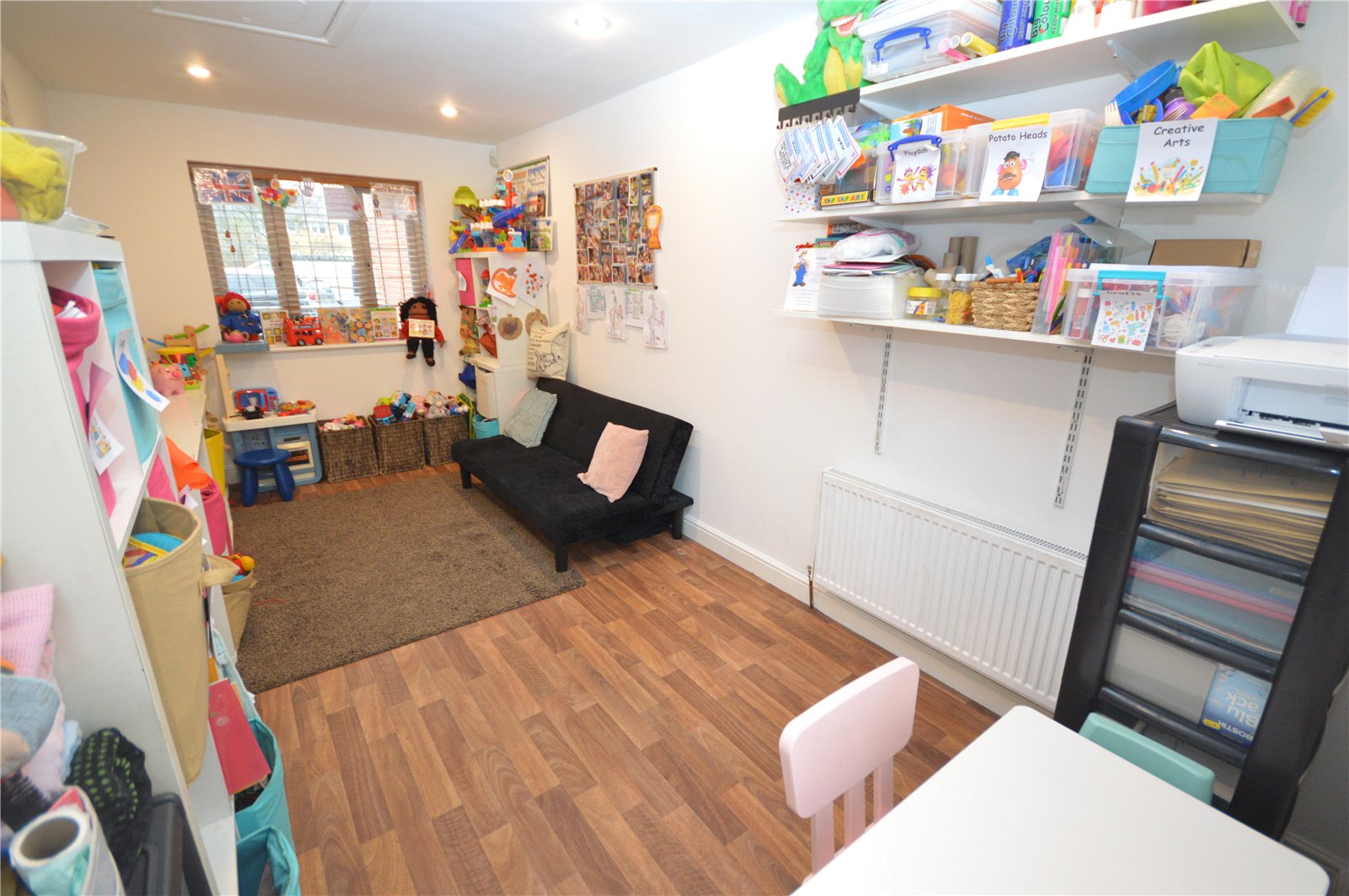 The property further benefits from a spacious family room positioned to the side, complete with loft access and personal access to the rear garden. This versatile area could easily serve as an additional bedroom, home office, or playroom. A fully heated conservatory provides an additional reception space, ideal for year-round use.