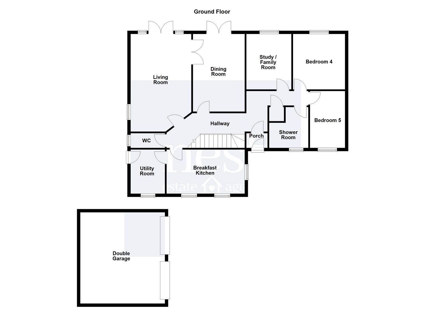 - Ample parking with block-paved driveway and a detached double garage set perpendicular to the house.
