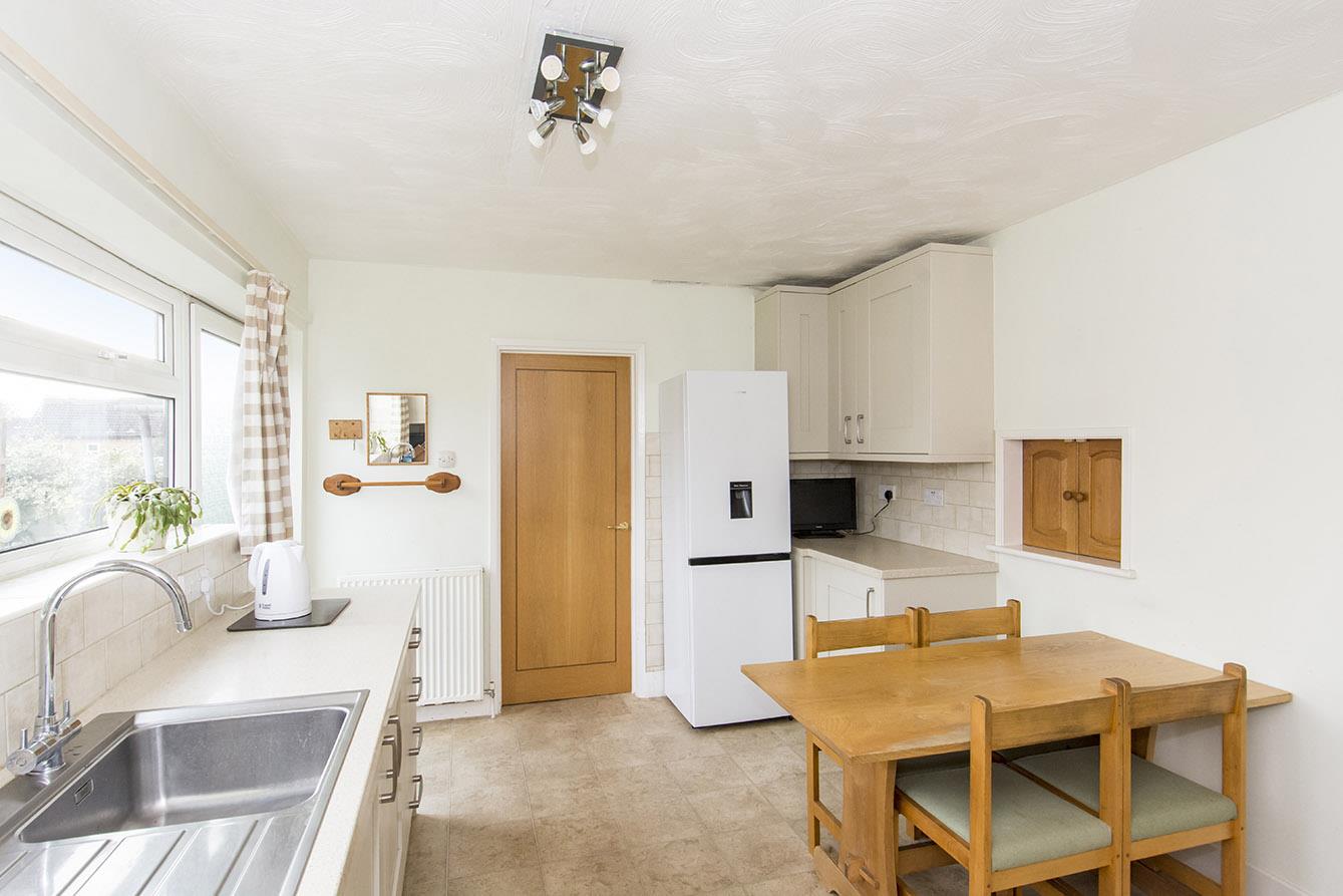 Breakfast Kitchen - 4.60m x 3.05m (15'1" x 10') - Fitted with modern cabinets with complimenting surfaces. Stainless steel sink with mixer taps. Double oven, gas hob and extractor fan. There is space for a fridge freezer and ample space for a breakfast table. Vinyl tiled flooring throughout. There is door that opens into the garden and also window to the rear aspect.