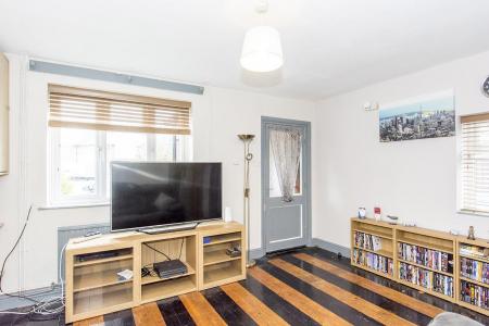 Lounge Diner - 3.96m x 3.38m (13' x 11'1") - This lovely lounge diner has dual aspect windows allowing lots of natural flood in. There is a feature fireplace housing an electric stove , built in storage cupboard set into the recess of the chimney breast and stripped floorboards.