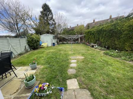 Patio area and furtherly the garden is mainly laid to lawn with shrub, tree and fence boundaries, outdoor electric sockets.