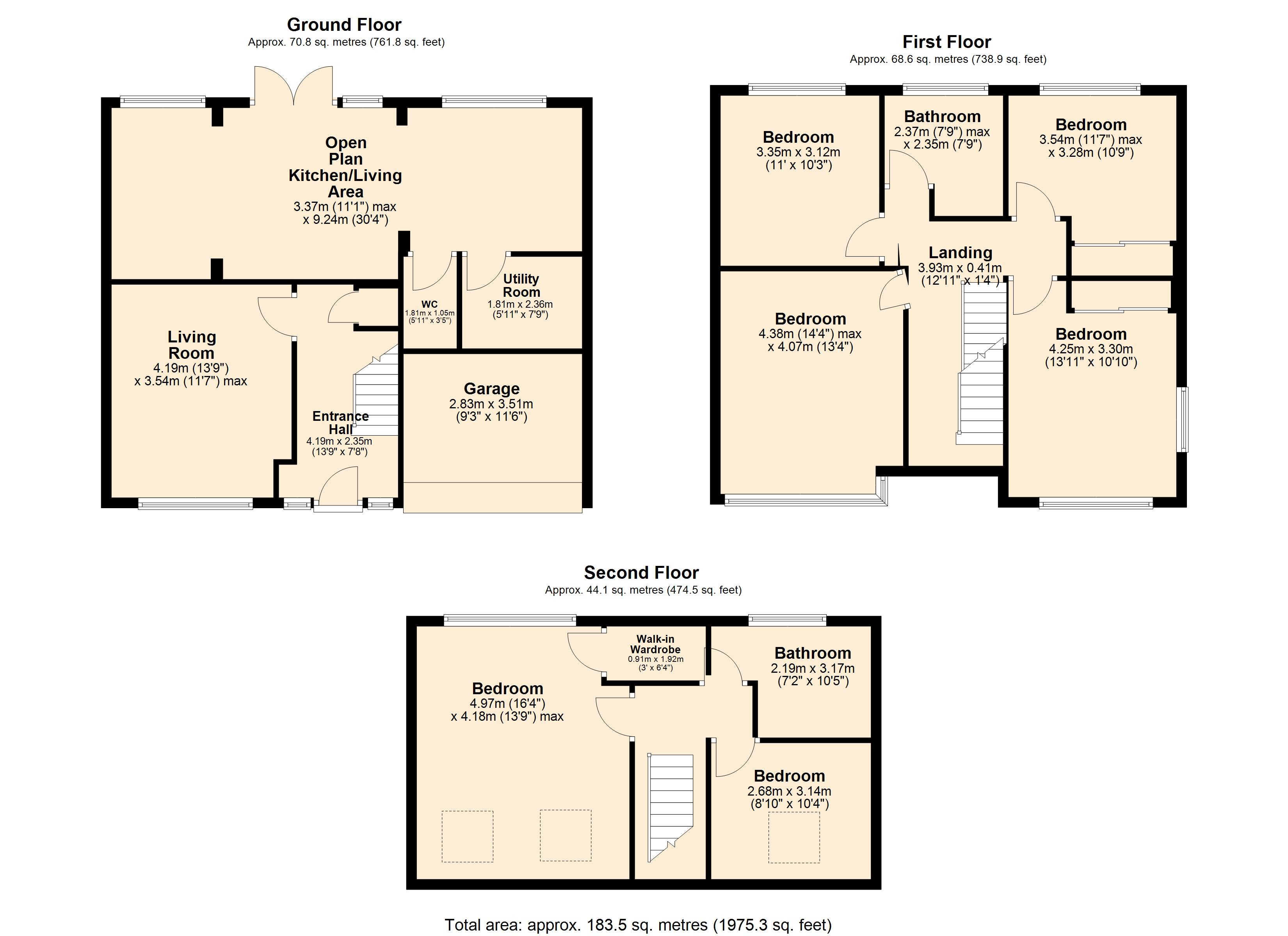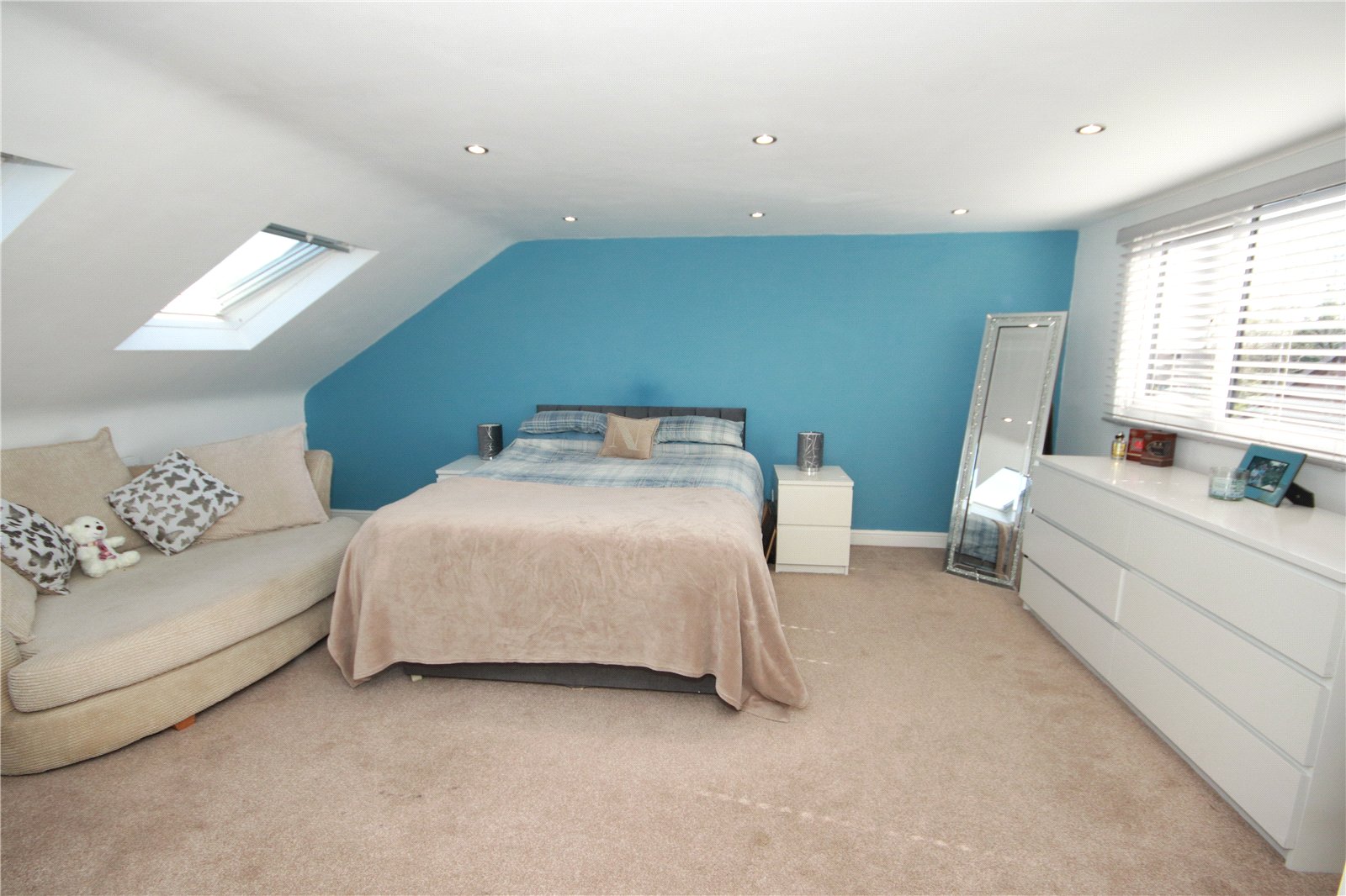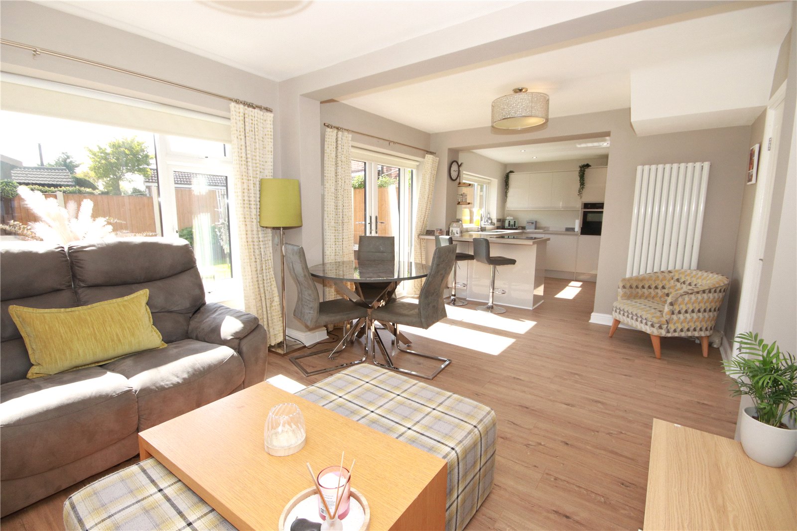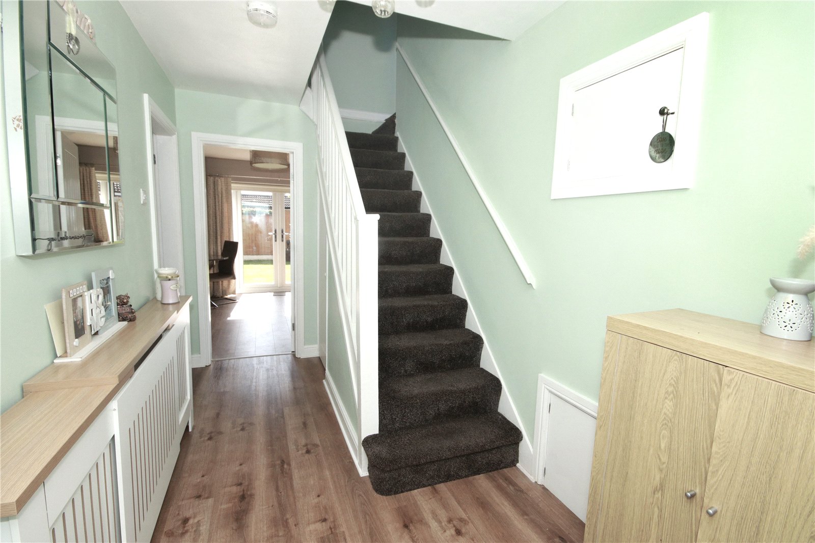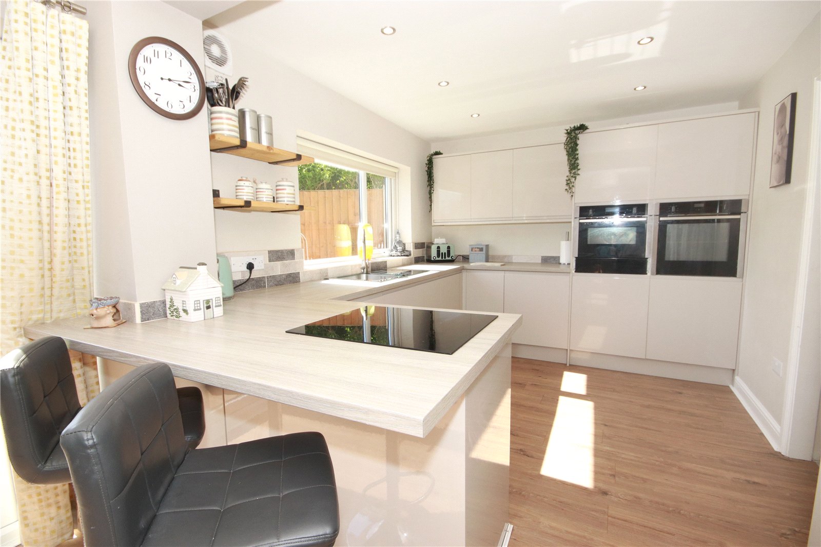 To the first floor, there are four well-proportioned double bedrooms, two of which benefit from fitted wardrobes, along with a sleek and modern family bathroom.