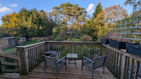 The private rear garden is mostly laid to lawn with mature shrubs and flower borders. A decked seating area provides lovely views over the garden with storage and shed below and a cellar provides additional storage.