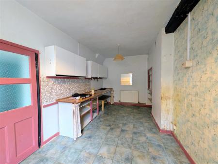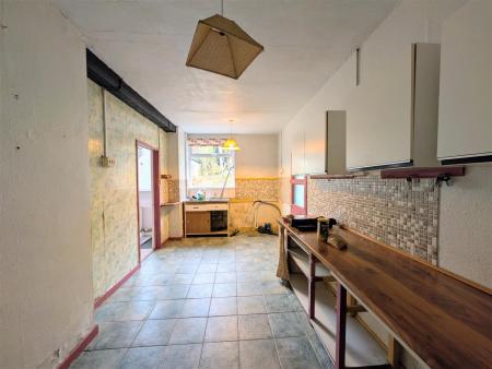 Kitchen - 5.41m x 2.67m (17'09 x 8'09) - Fitted with a range of base and wall mounted units incorporating single drainer stainless steel sink unit. Tiled flooring. Radiator. Power points. Space and plumbing for washing machine. Space for fridge freezer and cooker. Side aspect double glazed UPVC window. Door through to: