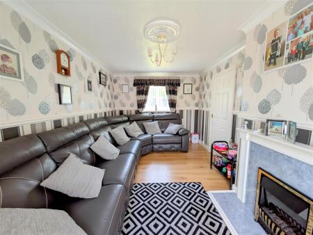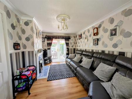 Living Room - 4.50m x 2.84m (14'09 x 9'04) - Feature gas fireplace with surround, ceiling and wall lighting, radiator, power points, front aspect window, rear aspect patio doors leading out to the garden.