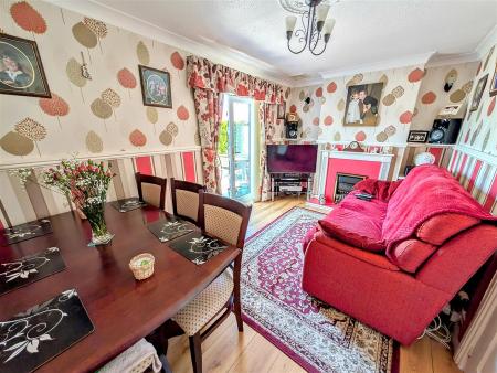 Dining Room - 2.62m x 3.99m (8'07 x 13'01) - Feature gas fireplace, wall and ceiling lights, radiator, power points. Double glazed patio doors lead out to the rear garden.