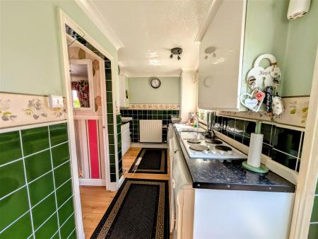 Kitchen - 5.28m x 1.52m (17'04 x 5'00) - A range of wall, base and drawer units, sink and drainer with mixer tap, space for plumbing for washing machine and dishwasher, four ring electric ceramic plate hob, integrated oven & grill, boiler located within cupboard, power points, ceiling light, side and rear double glazed window. Side aspect door.