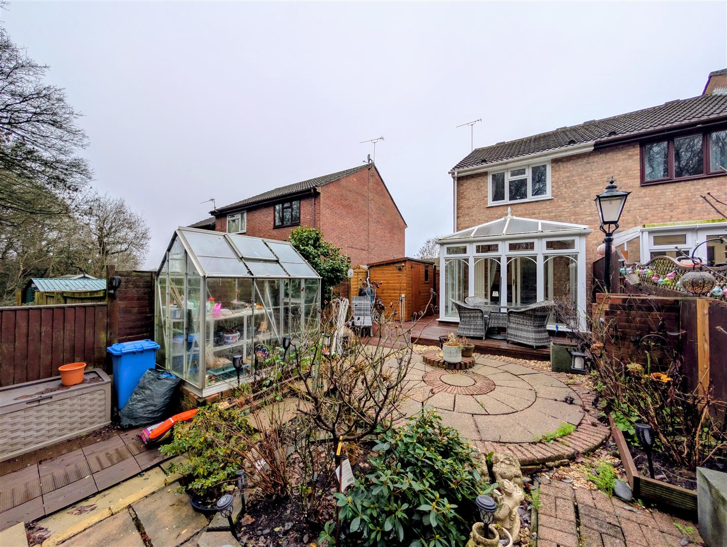 The rear garden is fully enclosed and landscaped to create multiple seating areas, including a decked area, patio and steps leading to a lower, low-maintenance section with flower beds. The garden is very private and backs onto mature trees. There is a large wooden garden shed with power and a greenhouse.