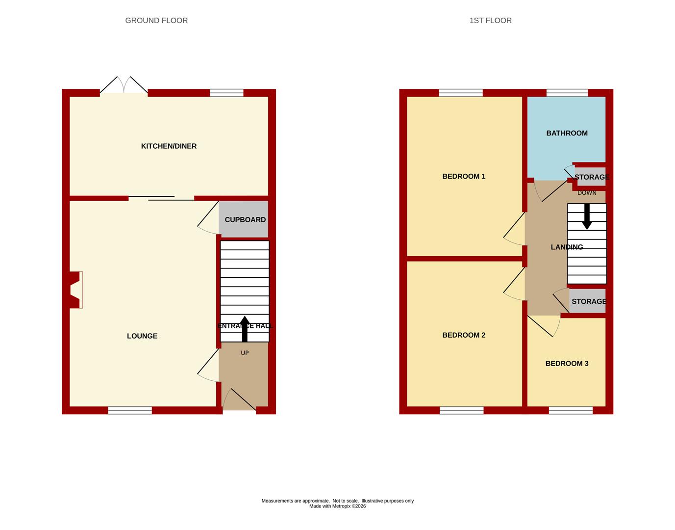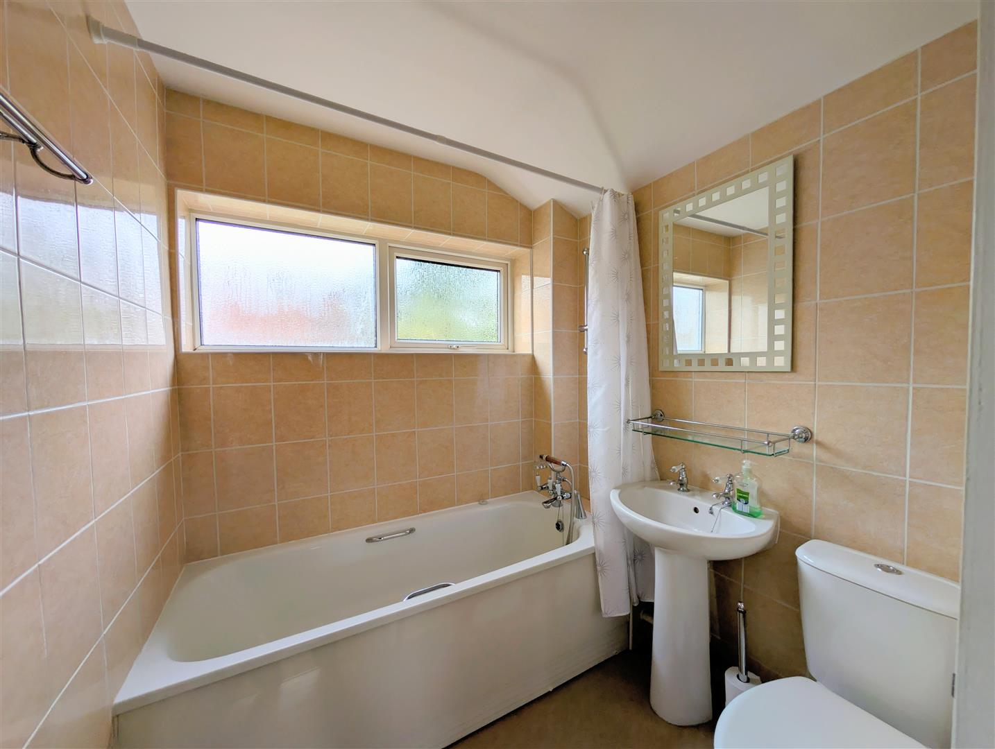 Bathroom - 1.80m x 1.78m (5'11 x 5'10) - Comprising a panelled bath with mixer tap with a mains shower attachment over, pedestal wash hand basin and low-level WC. Fully tiled walls. Built-in storage cupboard. Frosted double-glazed uPVC window to the rear.