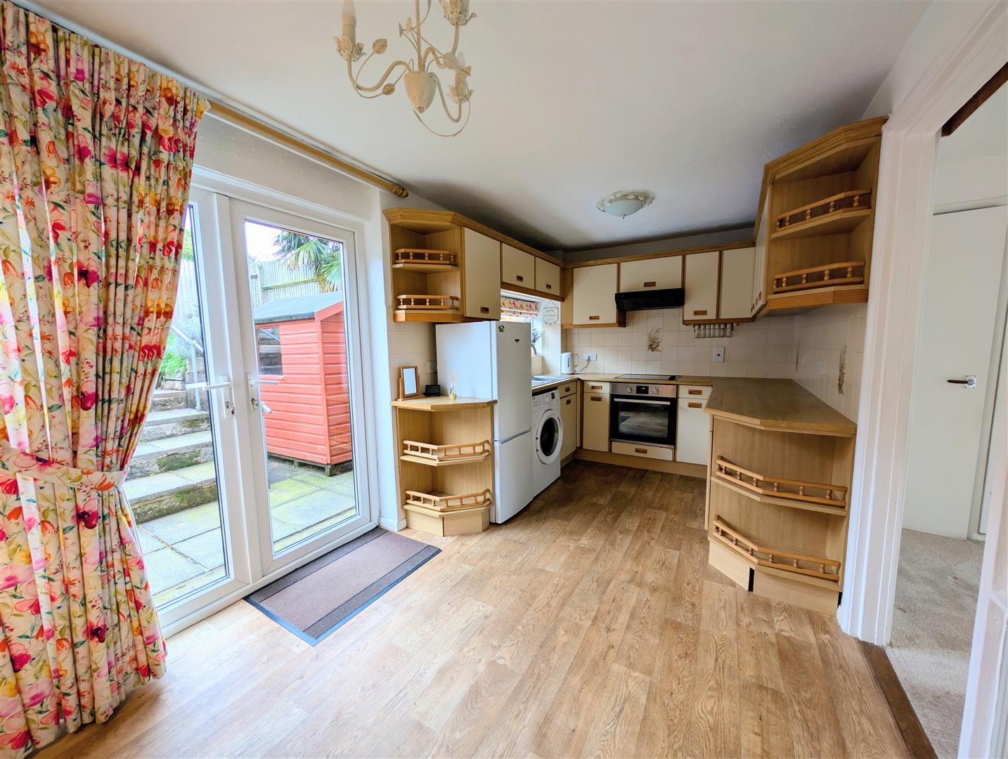 Kitchen - 4.83m x 2.39m (15'10 x 7'10) - Fitted with a range of base, drawer and wall-mounted units with roll-top work surfaces over. Stainless steel single drainer sink unit with mixer tap. Integrated electric oven with electric hob and extractor hood above. Washing machine and fridge/freezer. Wall-mounted gas-fired boiler. Radiator. Double-glazed uPVC window to the rear and double-glazed uPVC doors providing direct access to the rear garden.