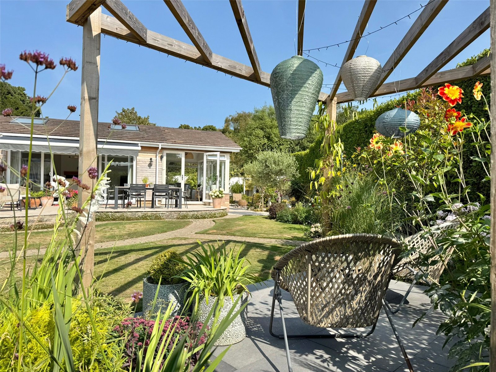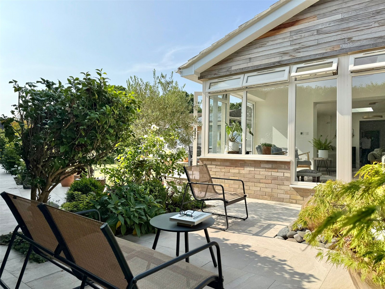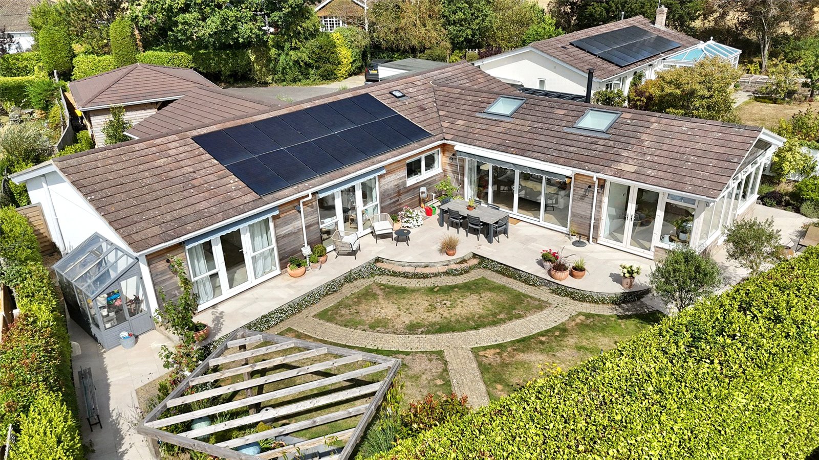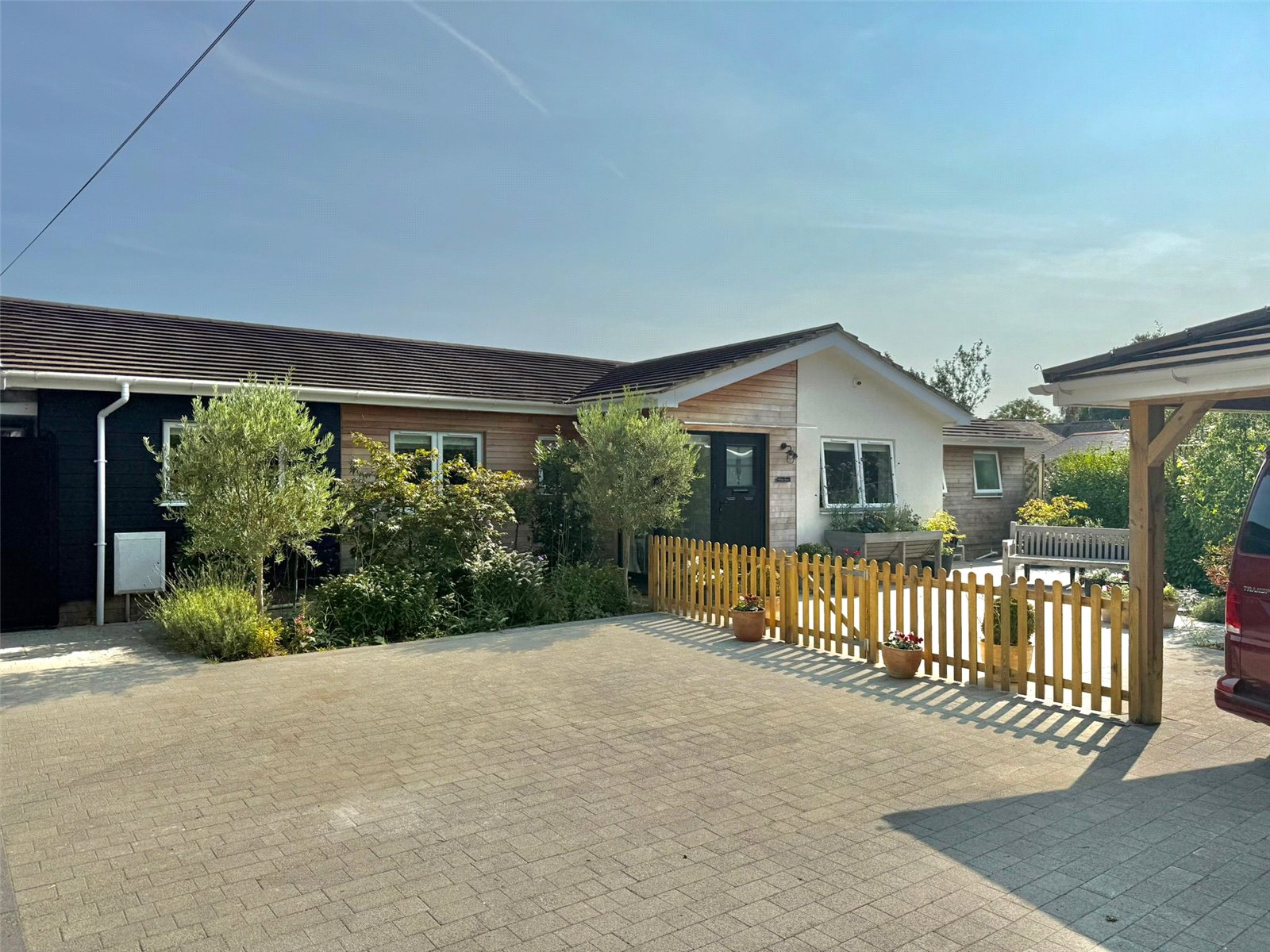 A three double bedroom, two bathroom, four reception bungalow, presented in showhome condition with modern free living accommodation, engaging with the landscaped south west facing garden and terracing, with garage and carport in a quiet tucked away location in the centre of the village