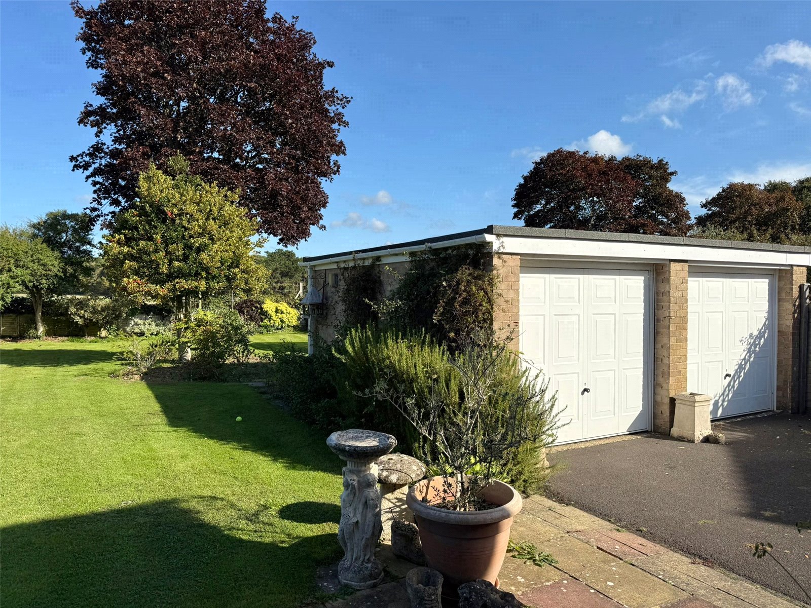 Two up and over doors, power and lighting, pedestrian door to the rear garden