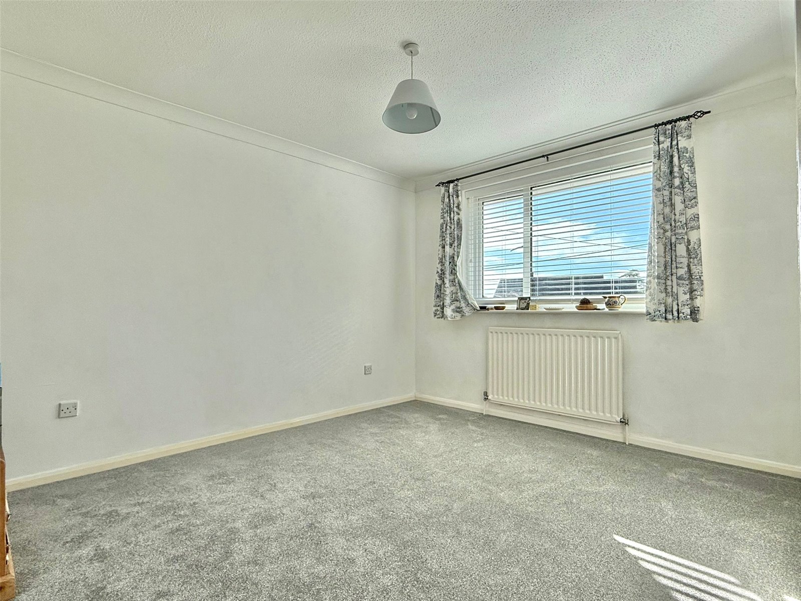 UPVC double glazed window to the front aspect, plantation style shutters, ceiling light point, central heating radiator, TV ariel point