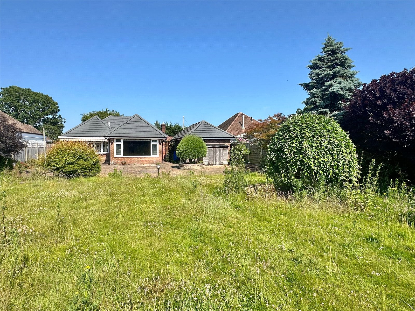 A two bedroom detached bungalow set in a substantial westerly facing plot with tremendous potential to extend and/or refurbish, and offered with no forward chain