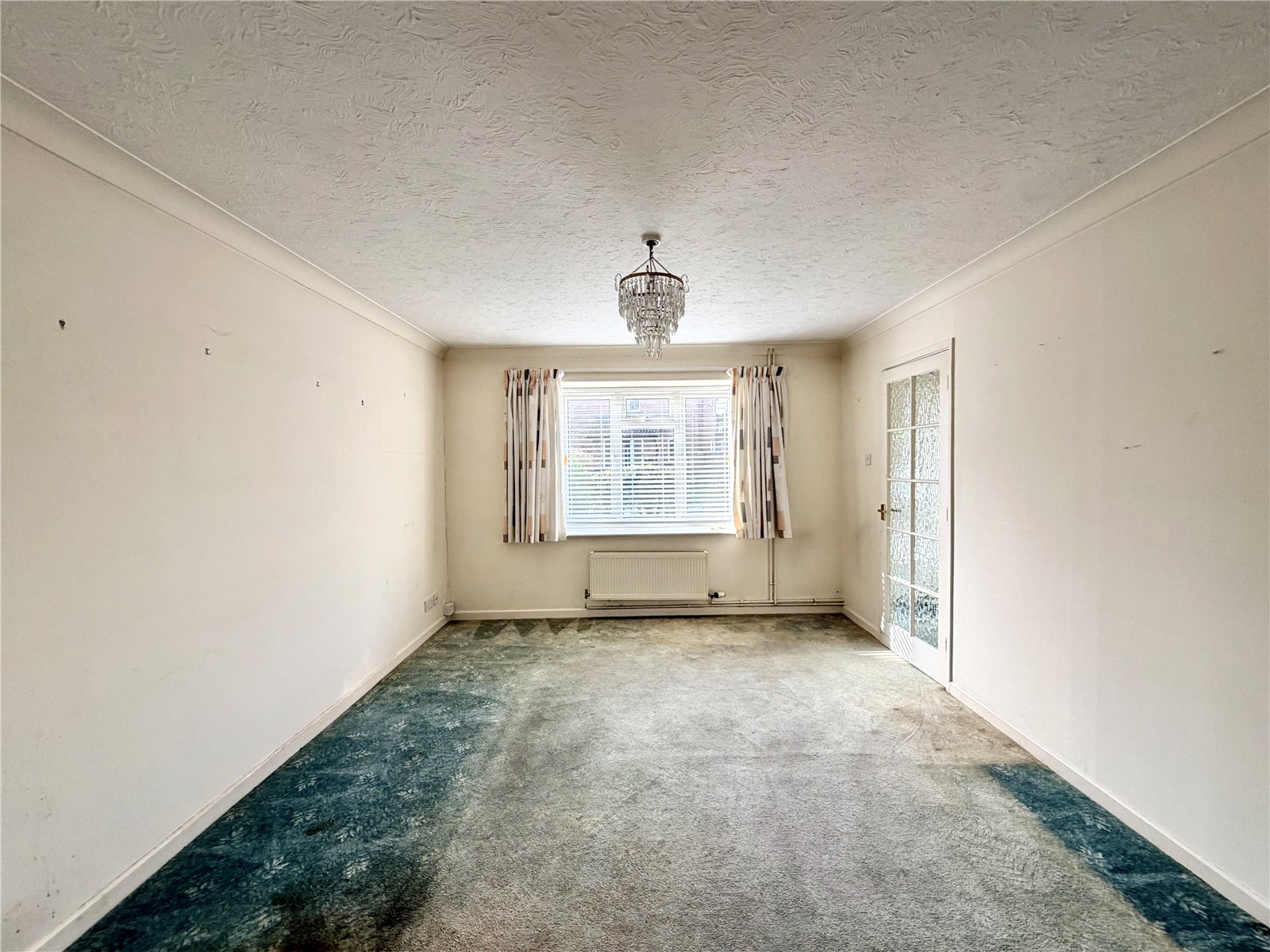 The property is approached via a small enclosed front garden with a pathway leading to the front door. This opens into a reception hallway with a useful double storage cupboard. A glazed door leads through to the sitting/dining room, a pleasant living space featuring a raised bay window overlooking the front garden.